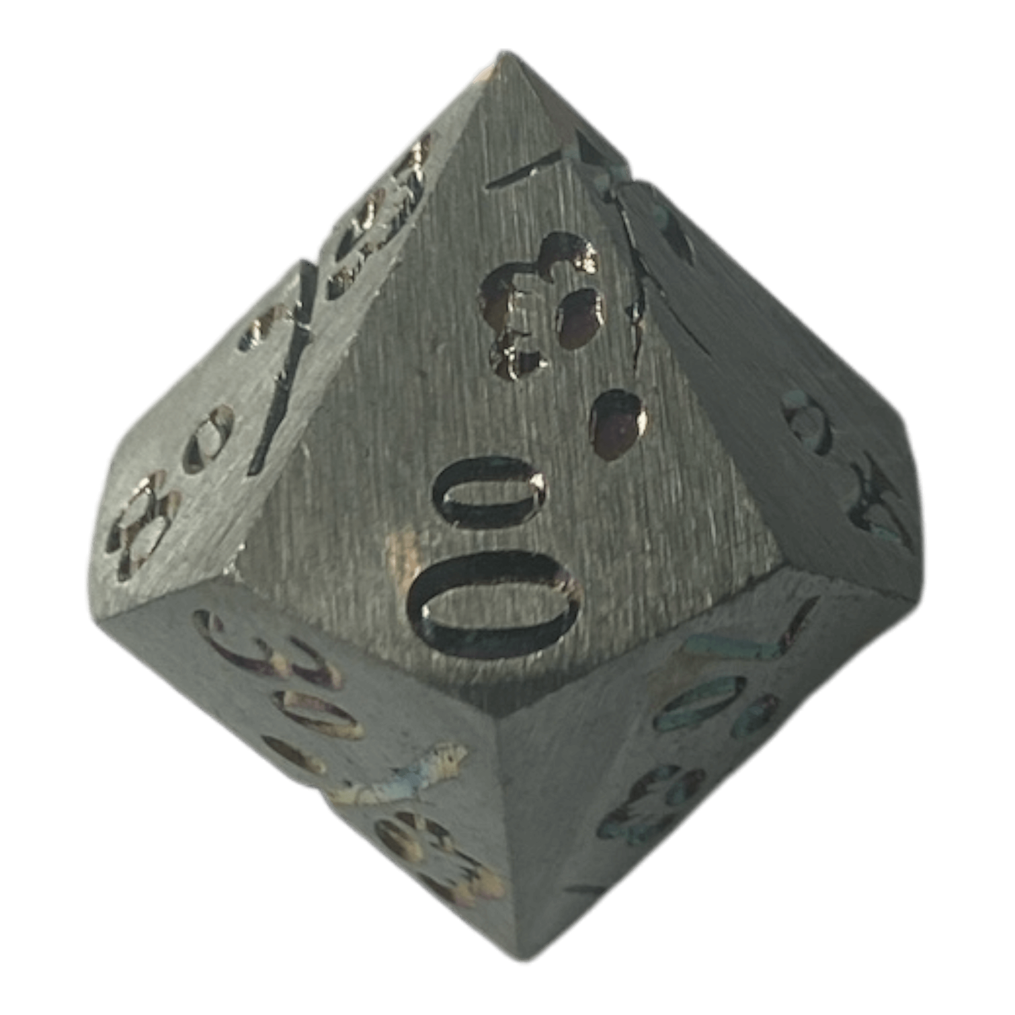 Ideal für Rollenspiele, Tabletop-Games oder als Sammlerstück – der W10-0 Blumen Metallwürfel in Silber vereint kunstvolle Ästhetik und zuverlässige Funktionalität.