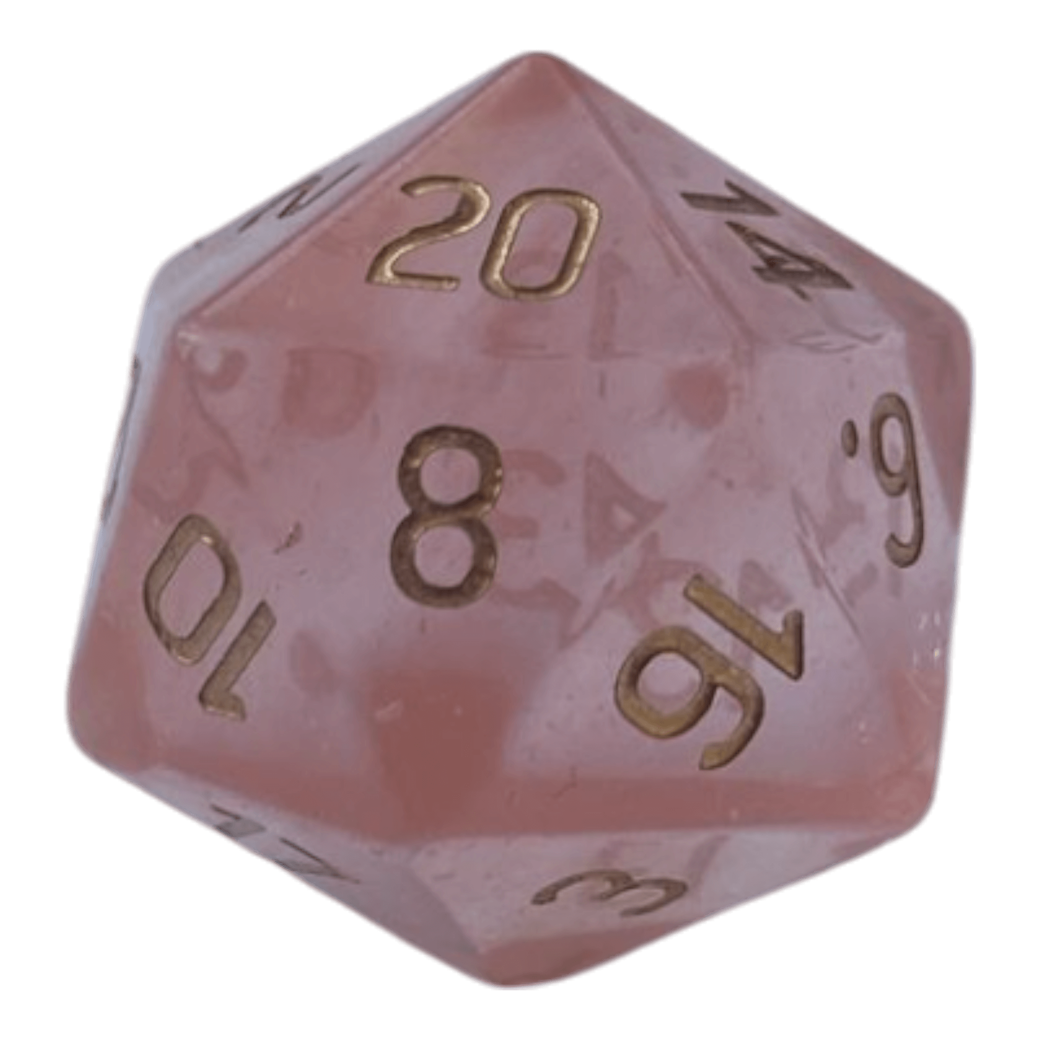 Für Spieler, die auf exklusive Designs setzen – der W20 Strawberry Quartz Würfel verbindet Luxus und Funktionalität in einem einzigartigen Würfel.