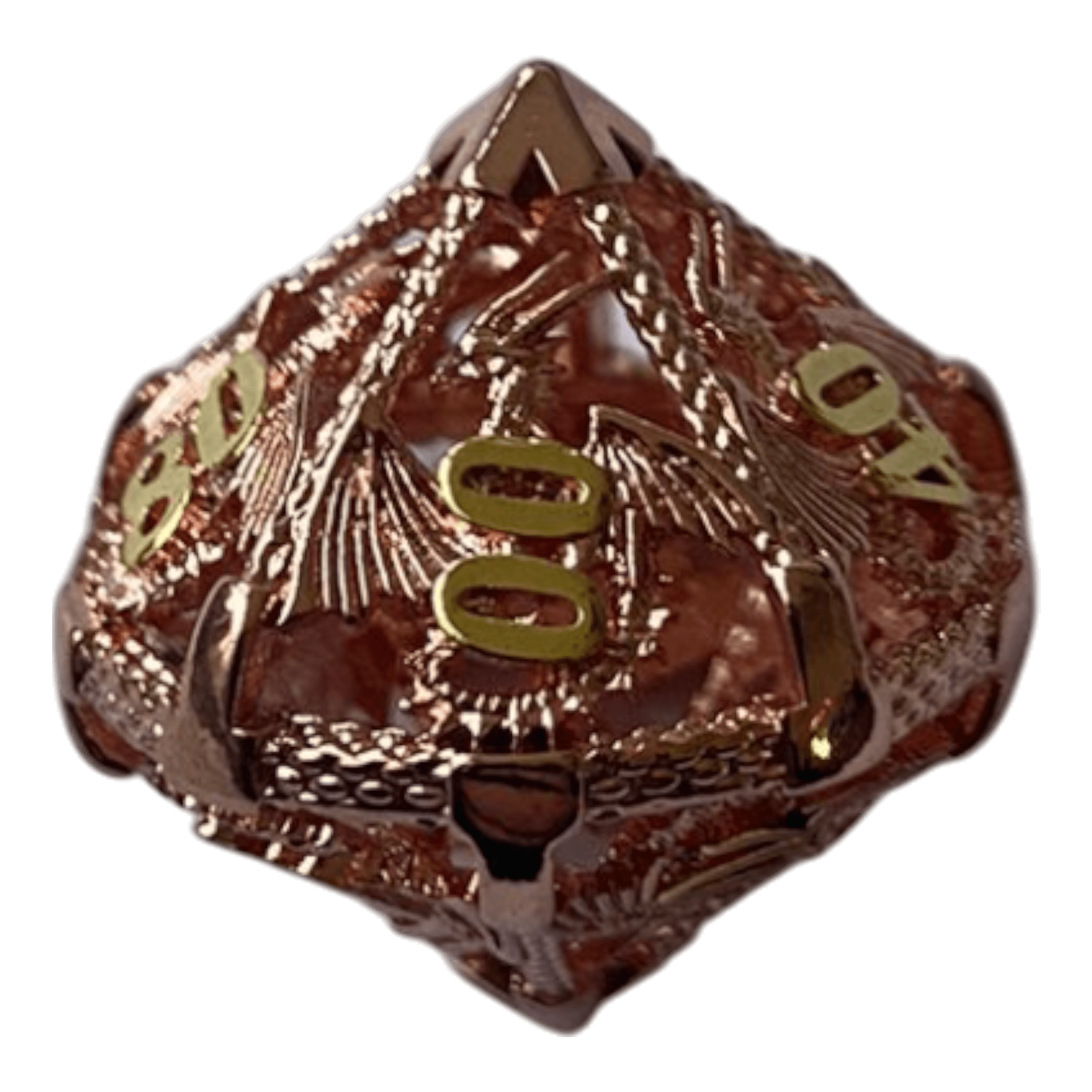 Der Drachenwürfel W10-0 in Kupfer mit goldenen Nummern bringt Stil und Präzision an deinen Spieltisch. Gefertigt aus hochwertigem Metall, bietet dieser Drachenwürfel eine perfekte Balance und langlebige Qualität. Seine goldenen Nummern, die in Zehnerschritten angezeigt werden (10 bis 00), sorgen für klare Lesbarkeit und ein flüssiges Spielerlebnis.