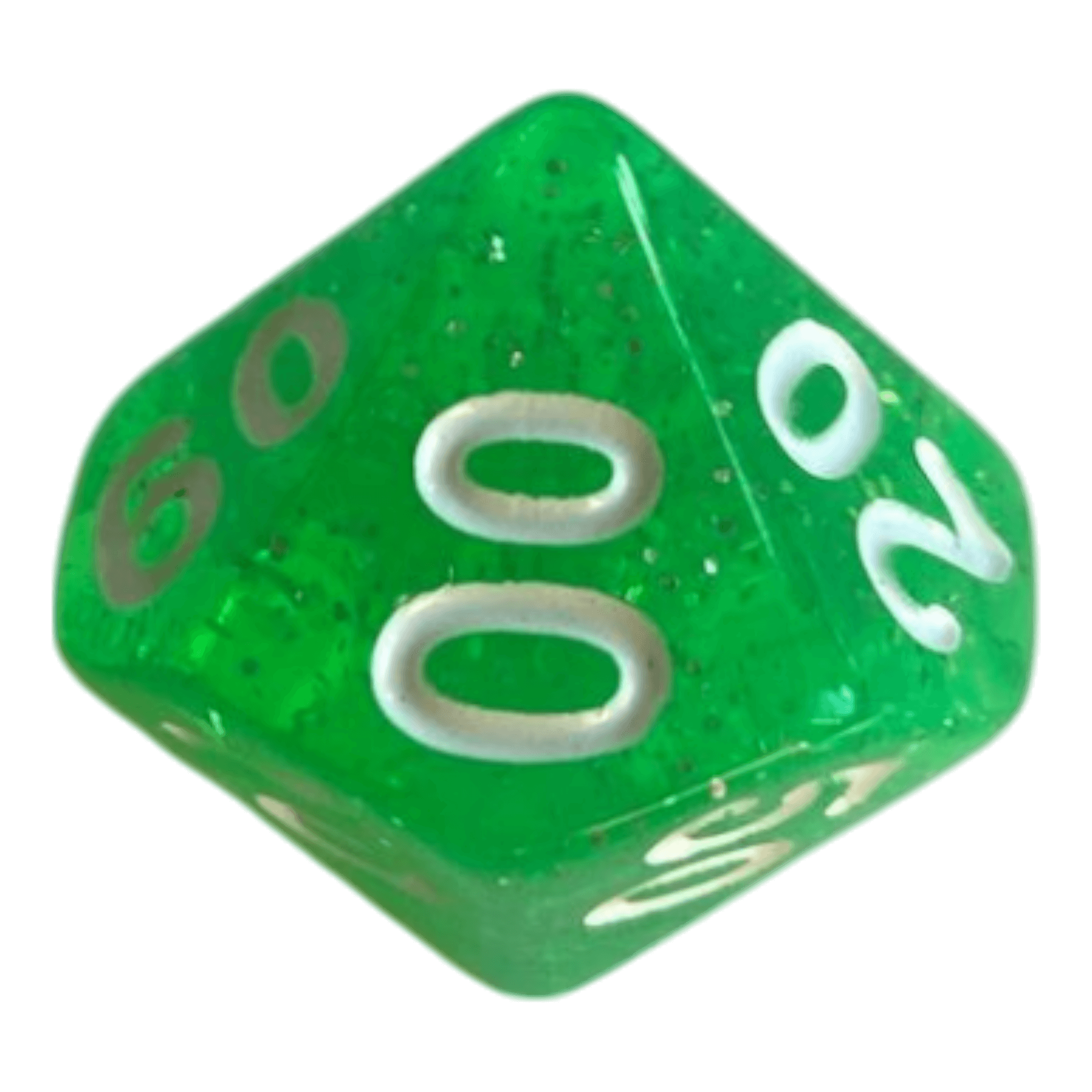 🎲 W10-0 Glitzer Würfel in Grün – Funkelnder Prozentwürfel für dein Spiel