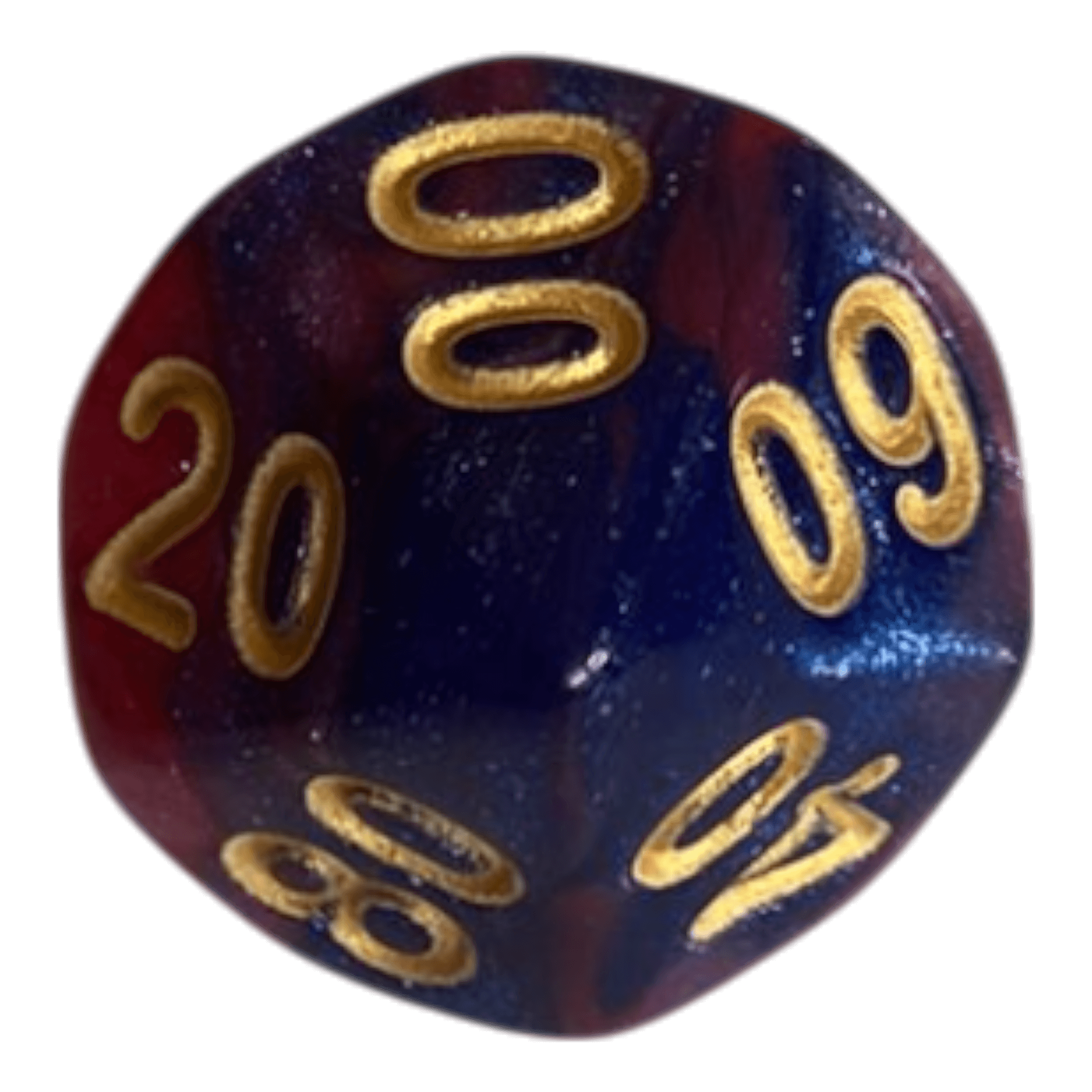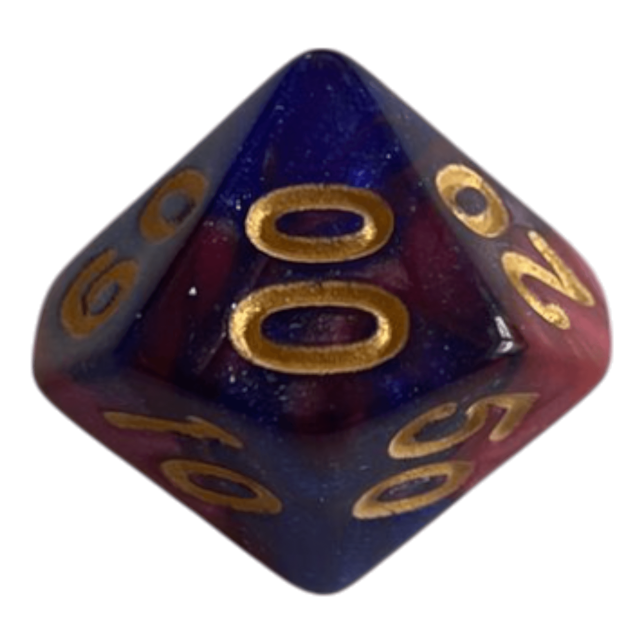 Dieser W10-0 Würfel in Blau/Rot überzeugt mit einer eindrucksvollen Kombination aus kräftigen Farben und schimmernden Glitzereffekten. Die Oberfläche vereint tiefes Blau mit leuchtendem Rot in einem sanften Übergang – durchzogen von feinen Glitzerpartikeln, die bei jedem Würfeln für ein visuelles Highlight sorgen.