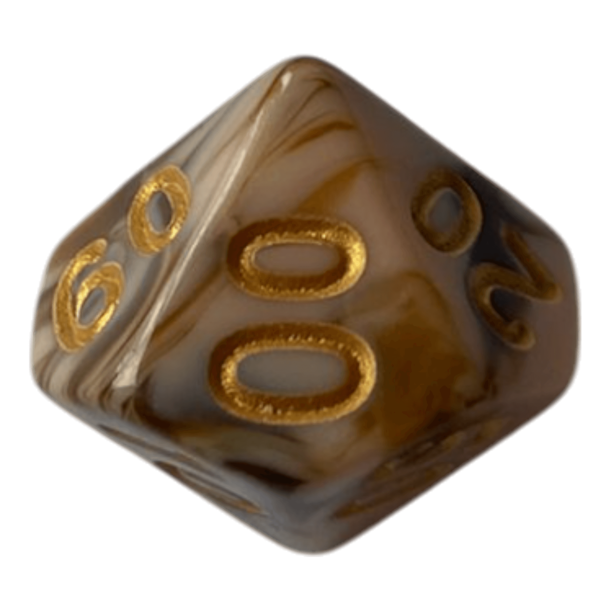 Der W10-0 Würfel aus der Chocolate & Rosa Marmorierten Würfel-Serie ist die perfekte Ergänzung für deine Würfelsammlung. Die harmonische Marmorierung in warmen Schokoladen- und zarten Rosatönen verleiht dem Würfel eine besondere Ästhetik. Die goldenen Zahlen setzen einen eleganten Kontrast und ermöglichen eine klare Ablesbarkeit bei Prozentwürfen.