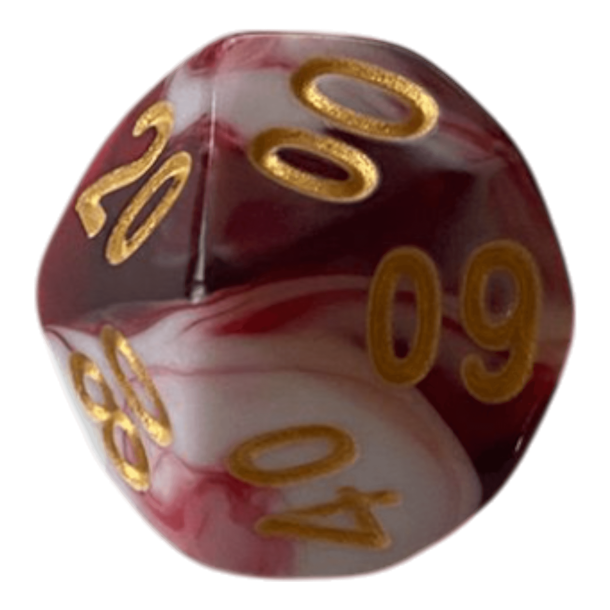 W10-0 Rot & Weiß Marmorierter Würfel – Eleganz für prozentuale Würfe