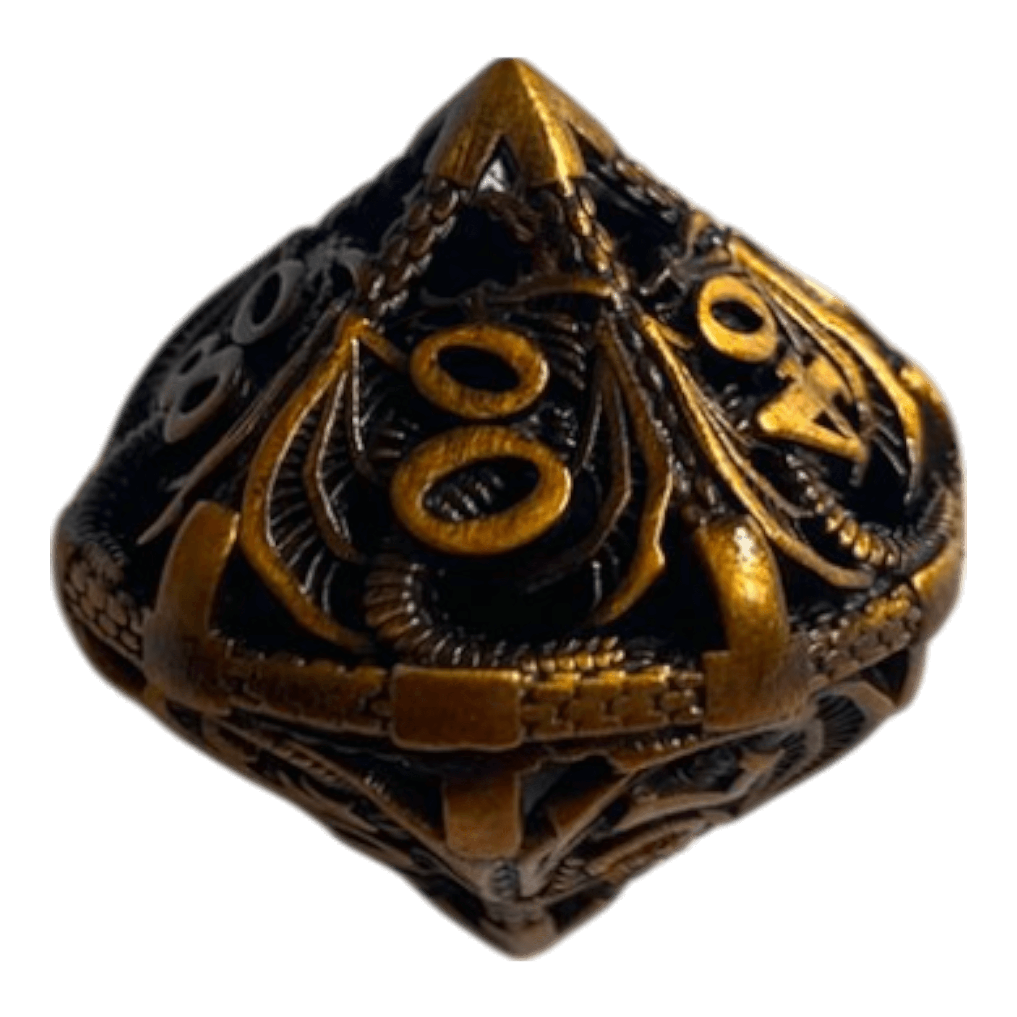 Der W10-0 Würfel in goldener Ausführung mit eindrucksvollen fliegenden Drachen ist das perfekte Werkzeug für präzise Prozentwürfe in deinen Lieblingsrollenspielen. Die aufwendigen Drachenmotive, kunstvoll ins Metall geprägt, verleihen dem Würfel ein episches Flair und machen ihn zu einem echten Blickfang.