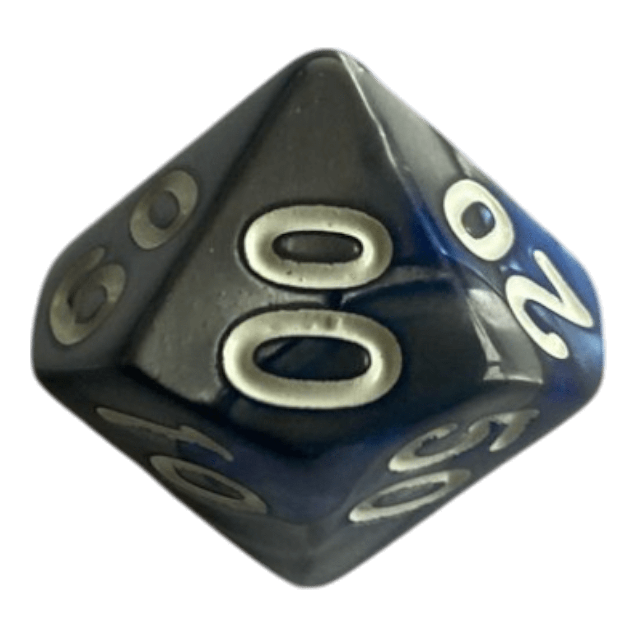 Dieser W10-0 Würfel in Blau und Grau besticht durch seine edle Perlmutt-Optik, die je nach Lichteinfall schimmernde Farbverläufe zeigt. Die weißen Zahlen in Zehnerschritten (10, 20, 30 usw.) sorgen für eine klare Lesbarkeit und machen diesen Würfel unverzichtbar für prozentuale Würfe.