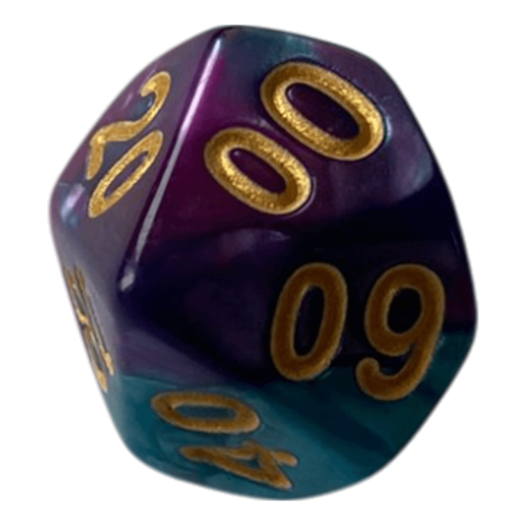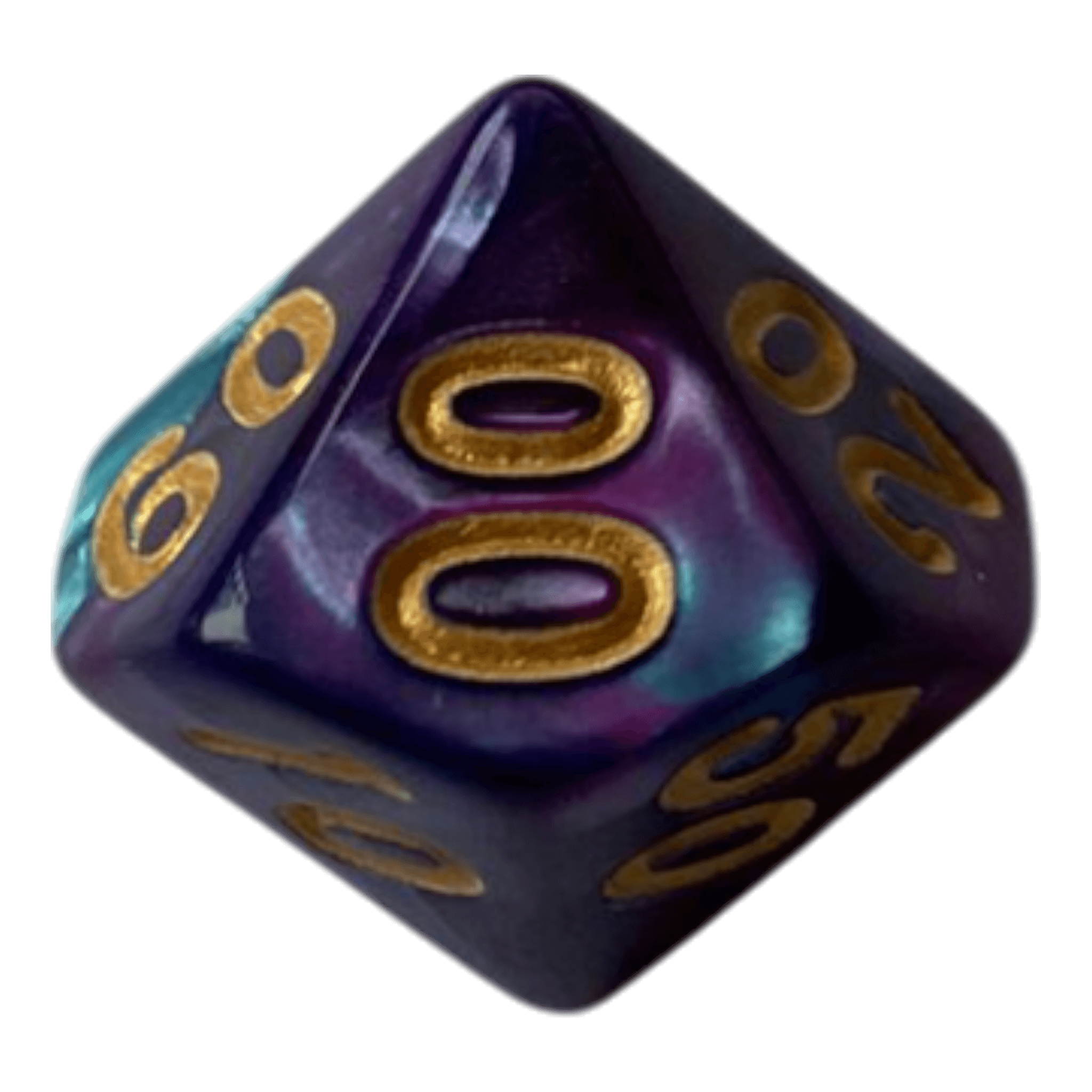 Der W10-0 Würfel aus unserem Blau & Lila Perlmutt Würfel-Set beeindruckt durch sein schimmerndes Perlmutt-Design in Blau und Lila. Die harmonischen Farben machen diesen Prozentwürfel zu einem echten Hingucker, während die klaren Zahlen in Zehnerschritten für präzise Ergebnisse sorgen.