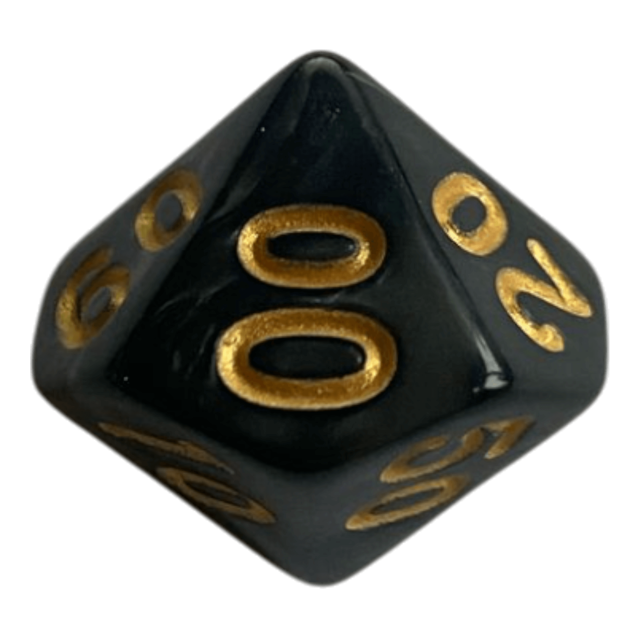 Dieser W10-0 Würfel in Schwarz vereint edles Design mit Funktionalität. Die schimmernde Perlmutt-Optik sorgt für faszinierende Lichtreflexe, während die goldenen Zahlen in Zehnerschritten (10, 20, 30 usw.) einen eleganten Kontrast bieten und für beste Lesbarkeit sorgen.