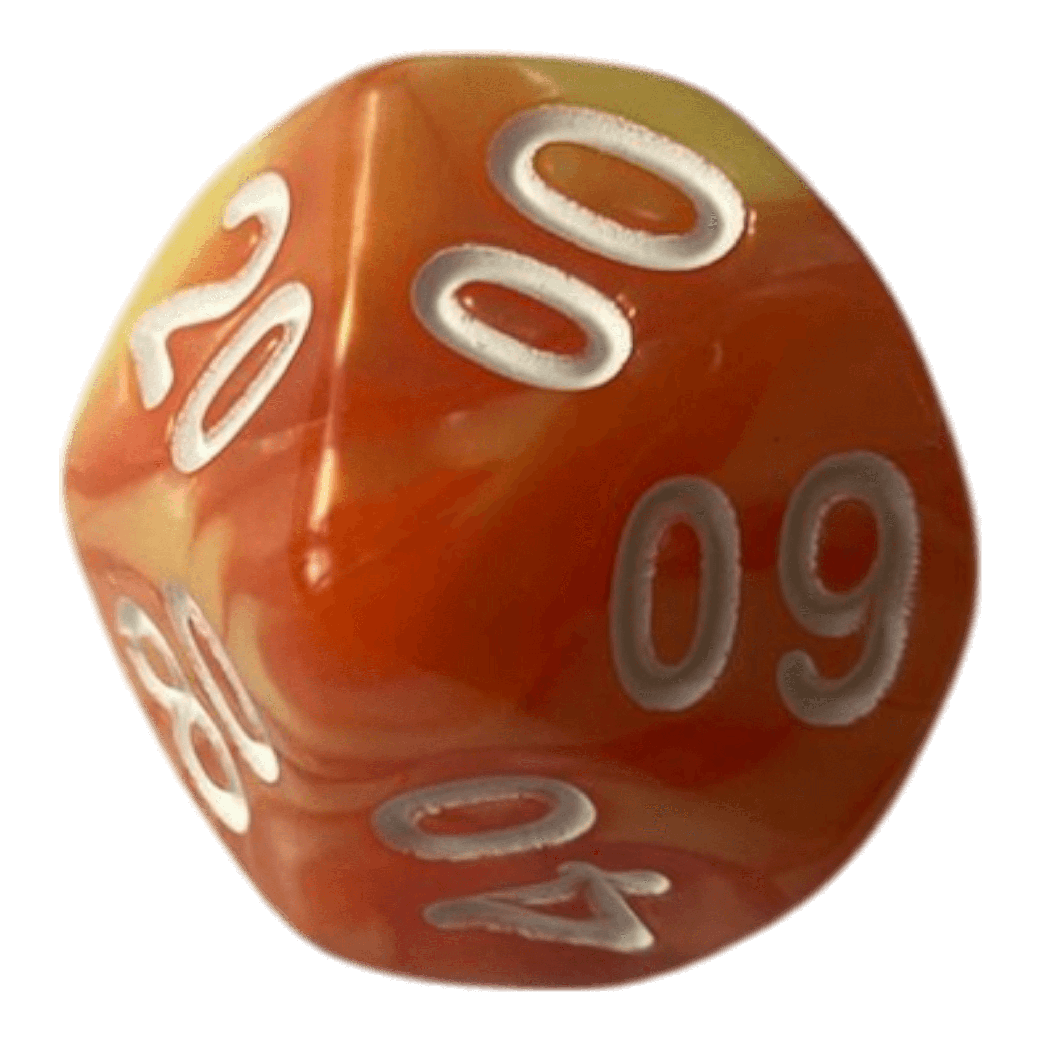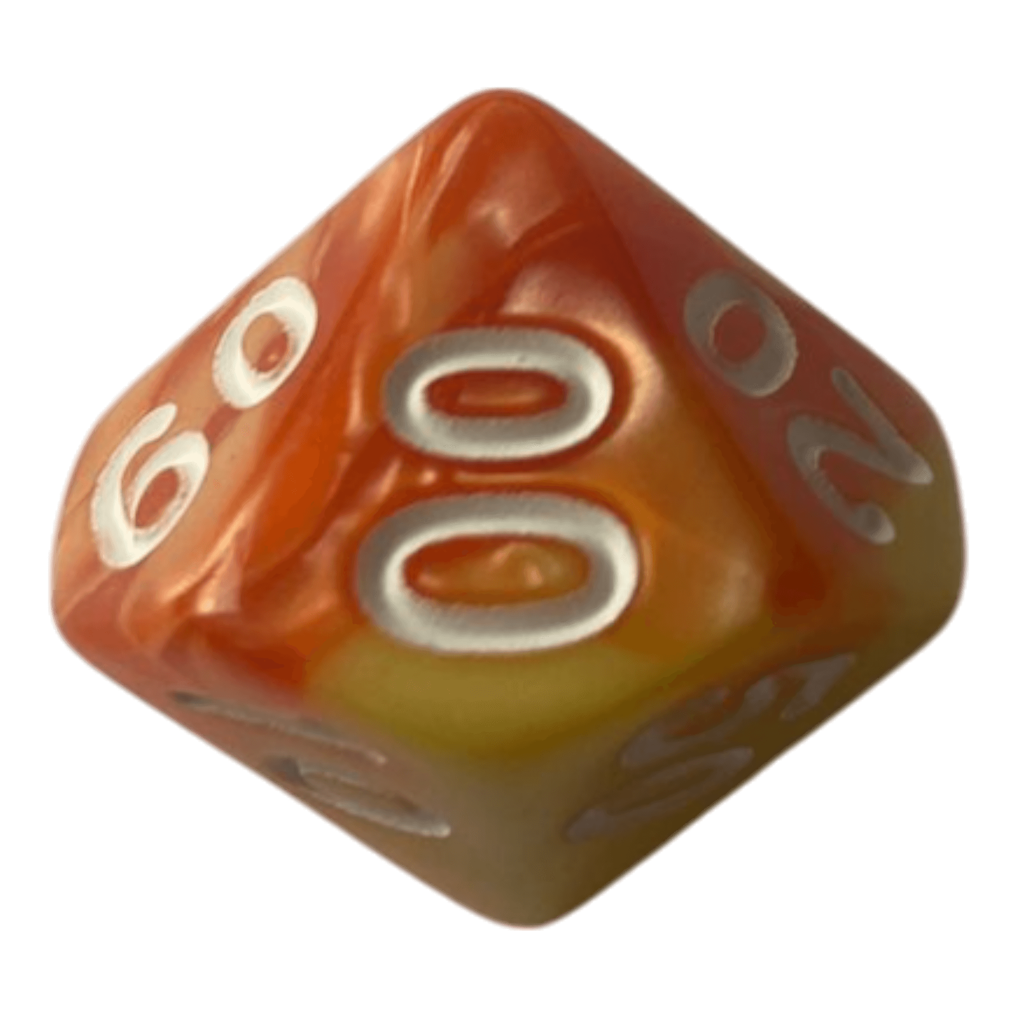 Der W10-0 Perlmutt Würfel in kräftigem Orange und Gelb ist die ideale Wahl für Prozentwürfe in deinen Lieblingsspielen. Hergestellt aus hochwertigem Kunststoff, bietet dieser Würfel nicht nur eine robuste Verarbeitung, sondern auch eine präzise Balance für exakte Würfelergebnisse.