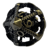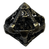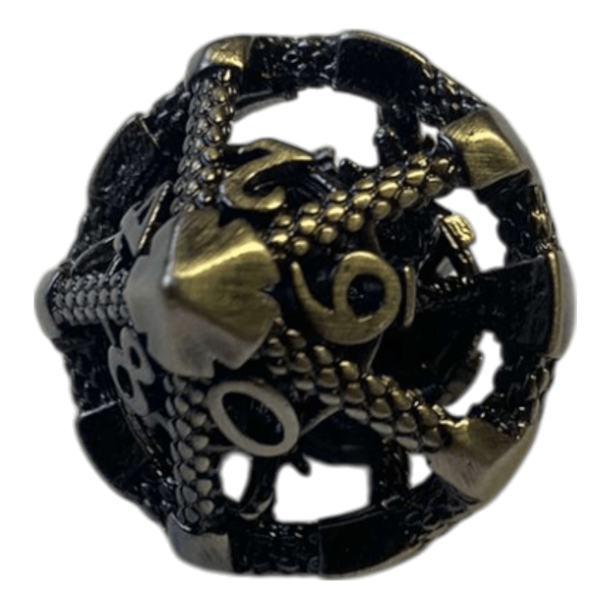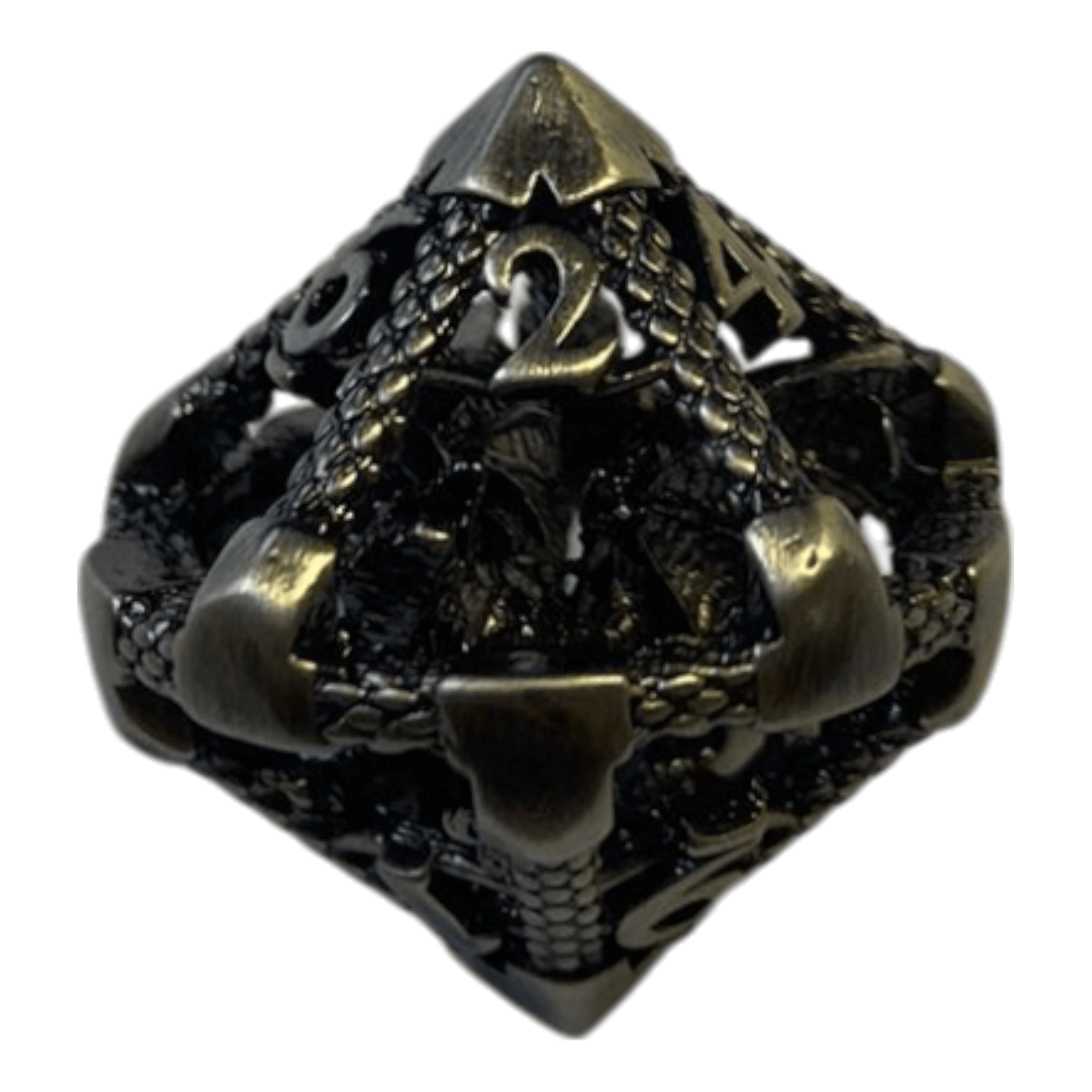 Der W10 Drachenwürfel in antikem Silber ist eine beeindruckende Mischung aus Funktionalität und Fantasie. Im Inneren des detailreich gearbeiteten Metallwürfels befindet sich ein kunstvoll gestaltetes Drachenmotiv, das deinem Rollenspieltisch eine einzigartige Atmosphäre verleiht.