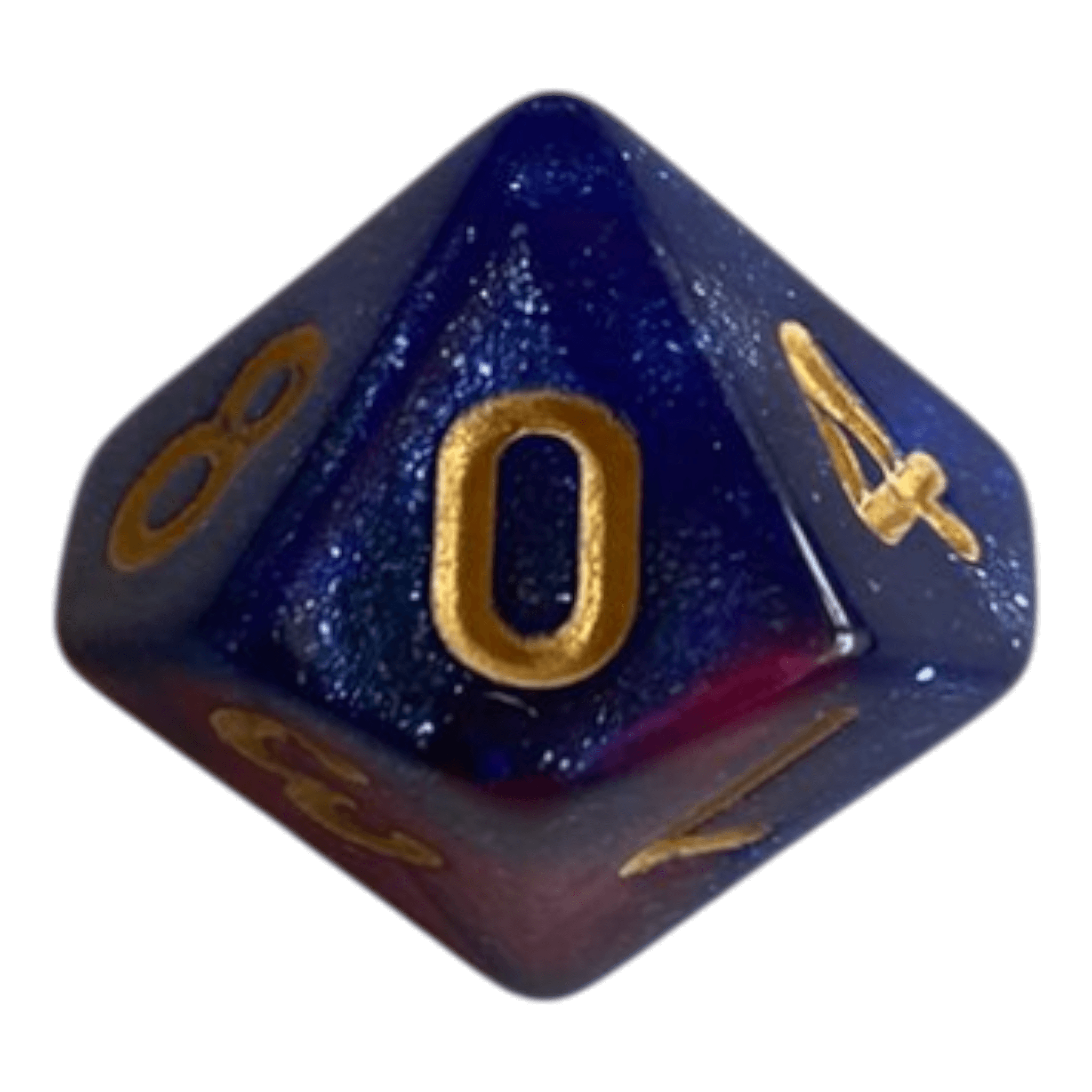 Der W10 Würfel in Blau/Rot vereint leuchtende Farben, feine Glitzereffekte und hochwertige Verarbeitung in einem formschönen Spielwürfel. Der Übergang zwischen kräftigem Blau und sattem Rot schafft eine lebendige, dynamische Optik, während die Glitzerpartikel im Inneren für ein magisch schimmerndes Spiel mit dem Licht sorgen.