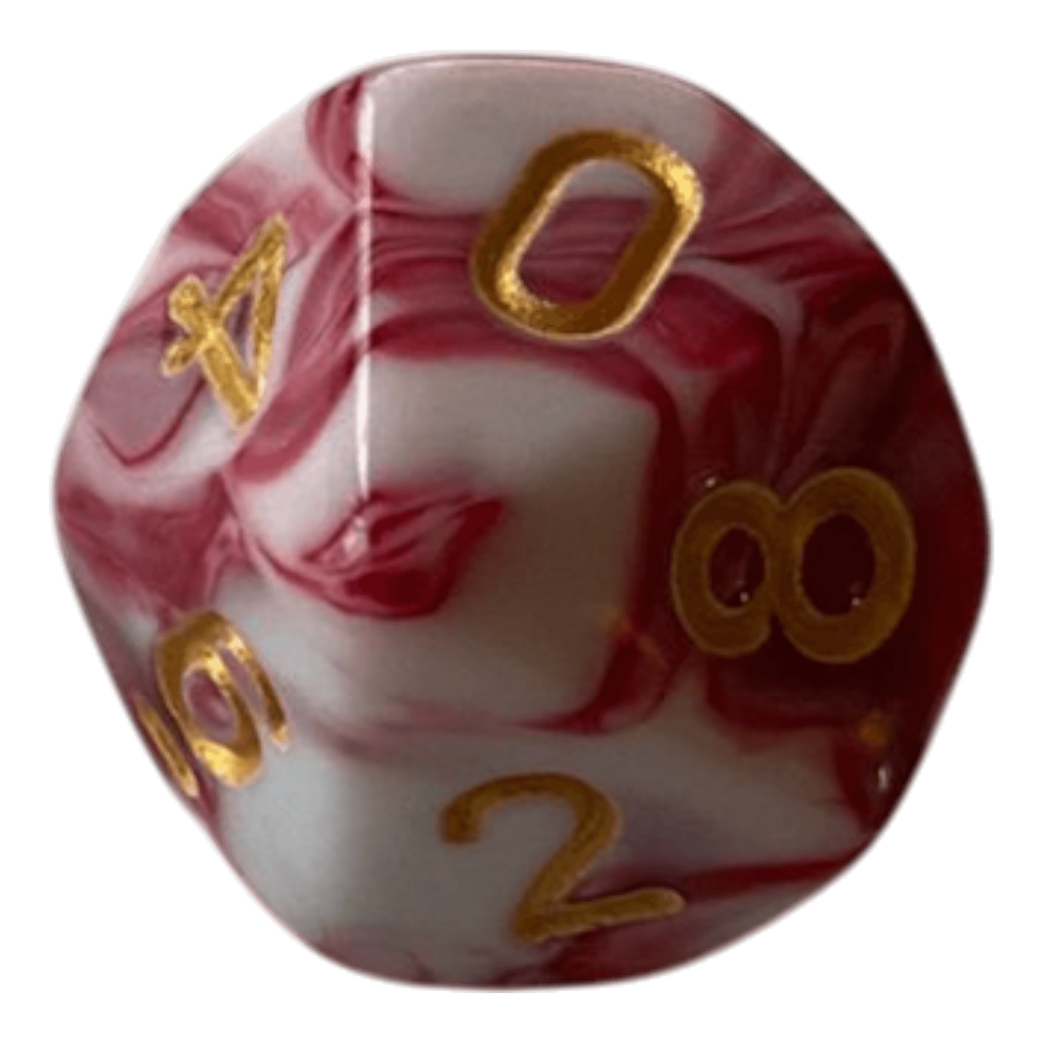 Der W10 Würfel aus der Rot & Weiß Marmorierten Würfel-Serie kombiniert elegante Ästhetik mit hervorragender Funktionalität. Die beeindruckende Marmorierung in kräftigem Rot und klassischem Weiß macht den Würfel zu einem echten Hingucker, während die goldenen Zahlen für klare Lesbarkeit sorgen und den hochwertigen Eindruck unterstreichen.