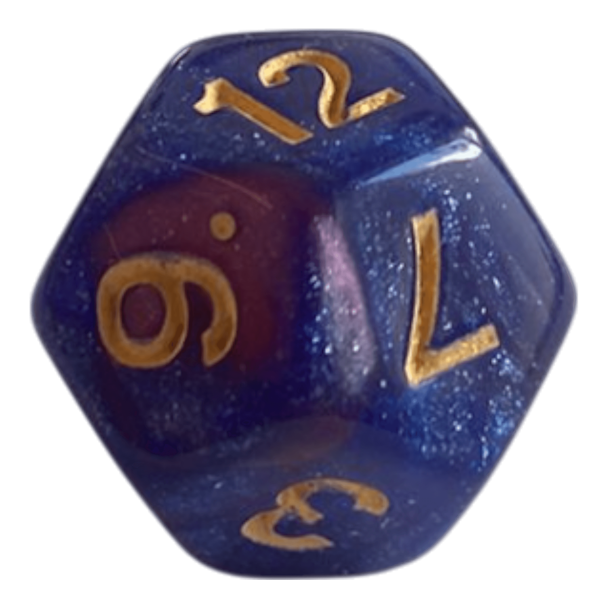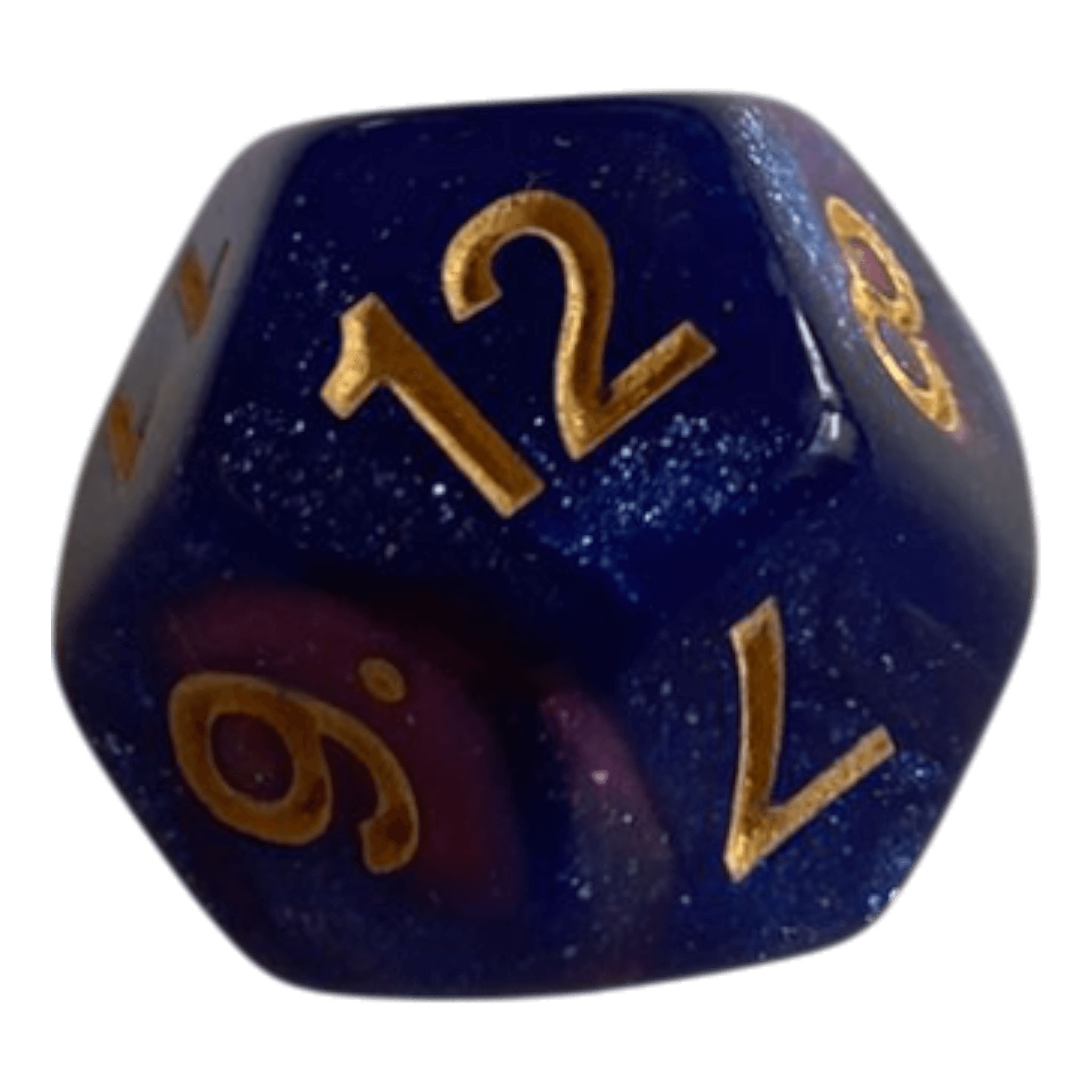 Der W12 Würfel in Blau/Rot ist wie geschaffen für spektakuläre Spielmomente. Der Farbverlauf von intensivem Blau zu leuchtendem Rot wird von feinen Glitzerpartikeln durchzogen, die bei jeder Bewegung ein faszinierendes Lichtspiel erzeugen. Die Oberfläche funkelt je nach Lichteinfall unterschiedlich – ein echter Blickfang am Spieltisch.