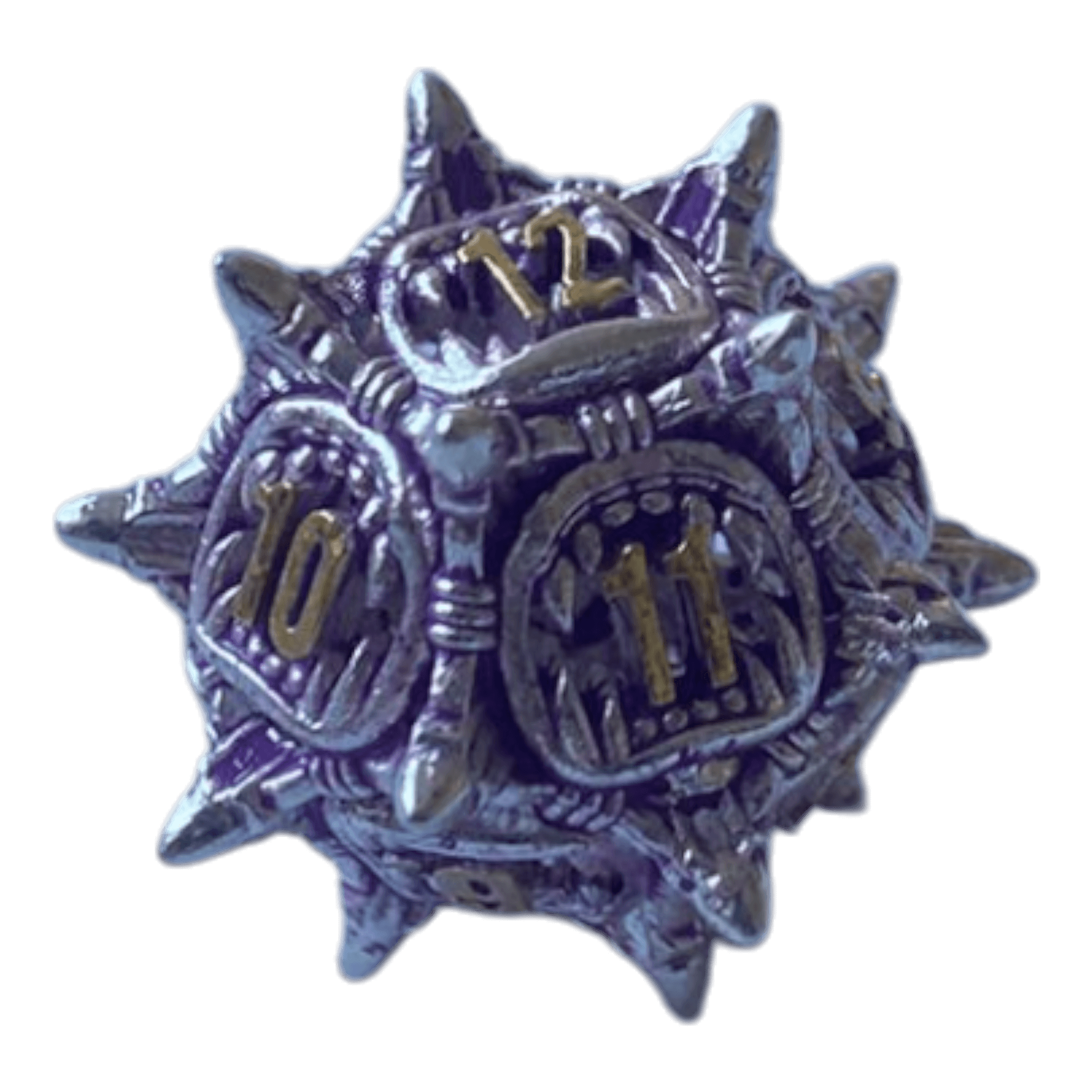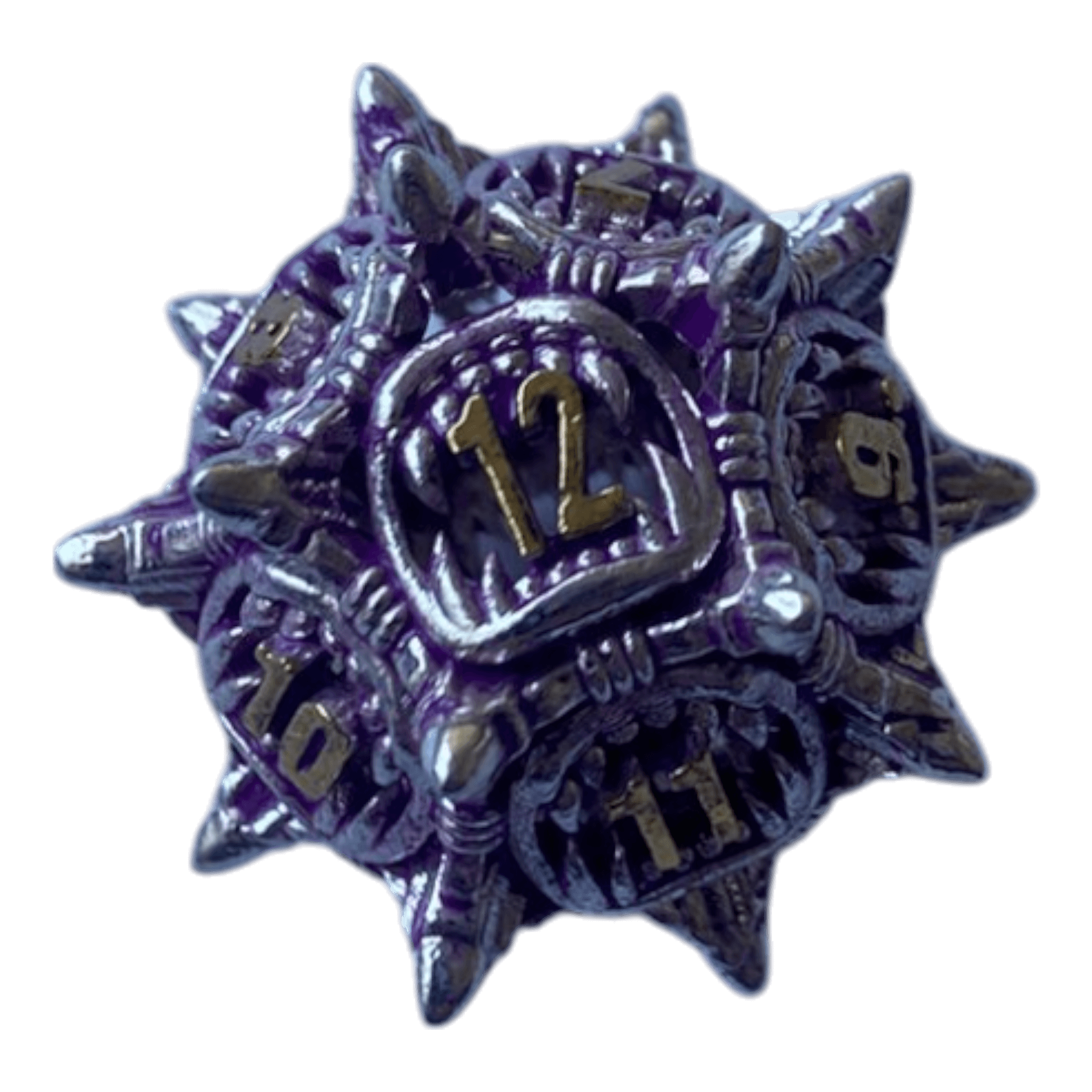Der W12 Monsterwürfel in faszinierendem Lila kombiniert auffälliges Design mit robuster Funktionalität. Gefertigt aus hochwertigem Metall, bietet dieser Würfel eine angenehme Schwere und präzise Balance, die für faire und exakte Würfelergebnisse sorgt.