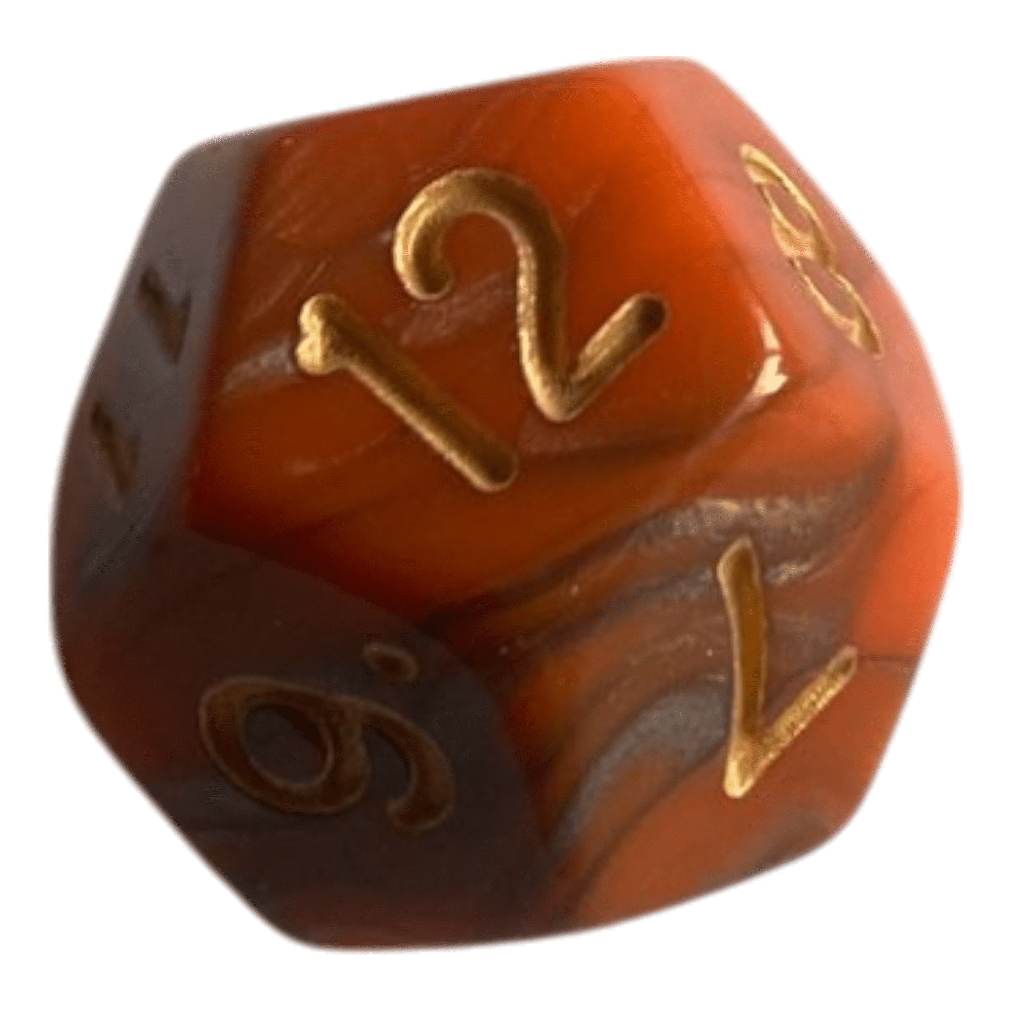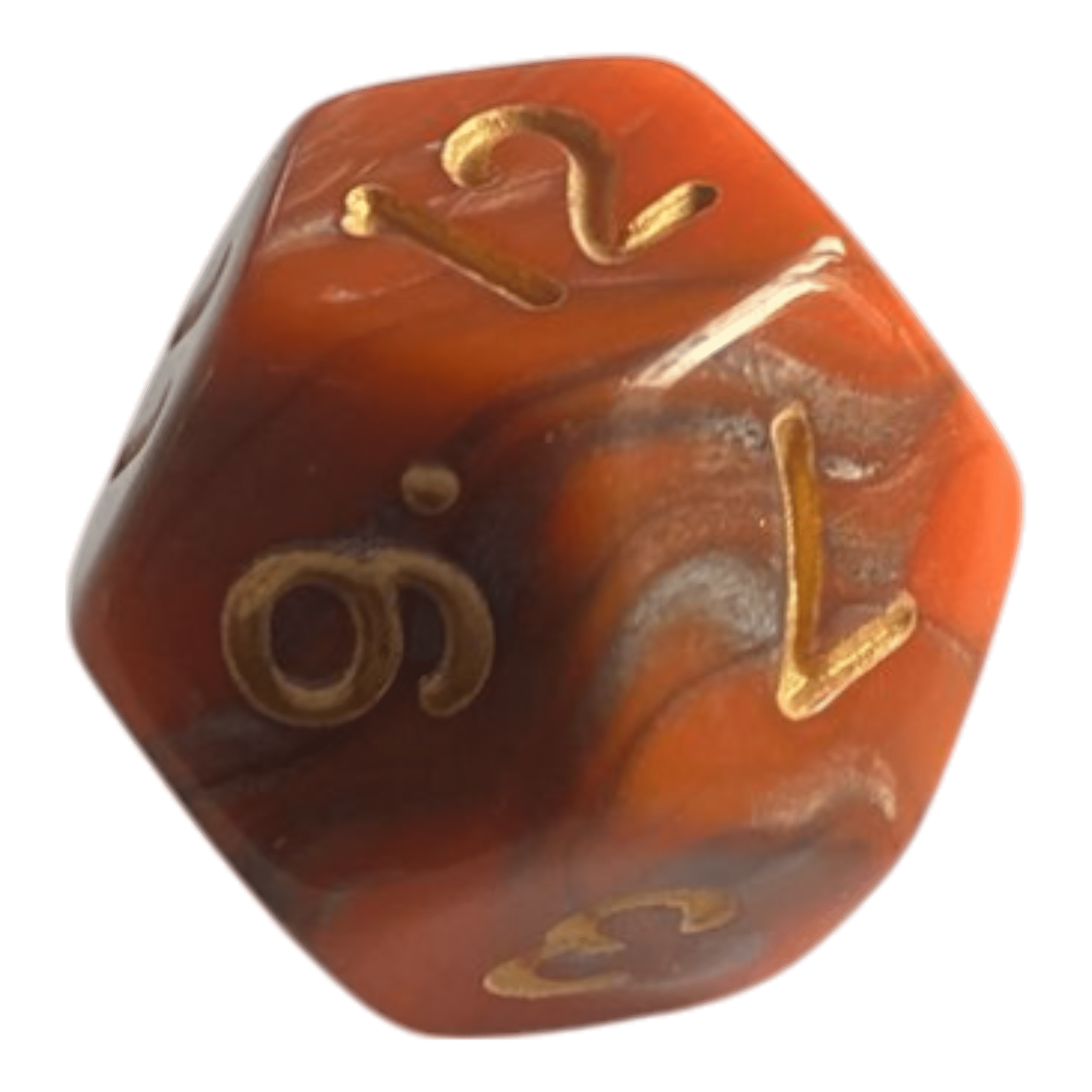 🎲 W12 Marmorierter Würfel in Orange/Grau – Eleganz & Präzision