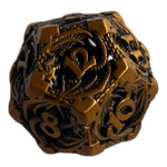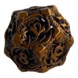 Der Metallwürfel in goldener Farbe mit kunstvoll eingravierten fliegenden Drachen bringt majestätische Fantasy-Atmosphäre an deinen Spieltisch. Die filigranen Drachenmotive verleihen dem Würfel ein edles, fast mystisches Aussehen – perfekt für Charaktere mit großer Macht oder legendäre Gegner in deiner Kampagne.