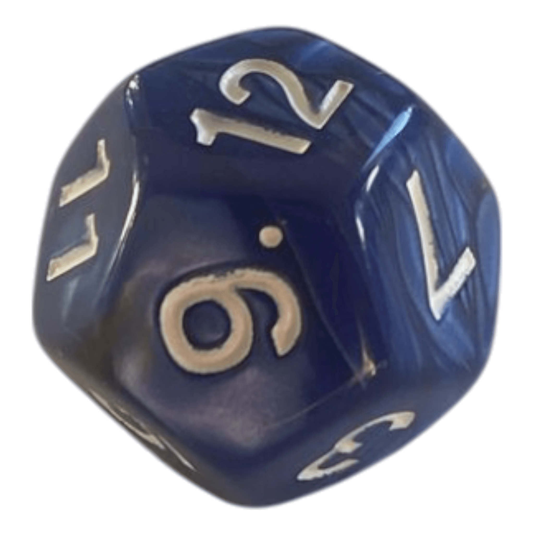 Dieser W12 Würfel in Blau & Gold beeindruckt mit seiner edlen Perlmutt-Optik, die je nach Lichteinfall schimmernde Reflexe zeigt. Die weißen Zahlen setzen sich deutlich vom Hintergrund ab und sorgen für eine hervorragende Lesbarkeit.