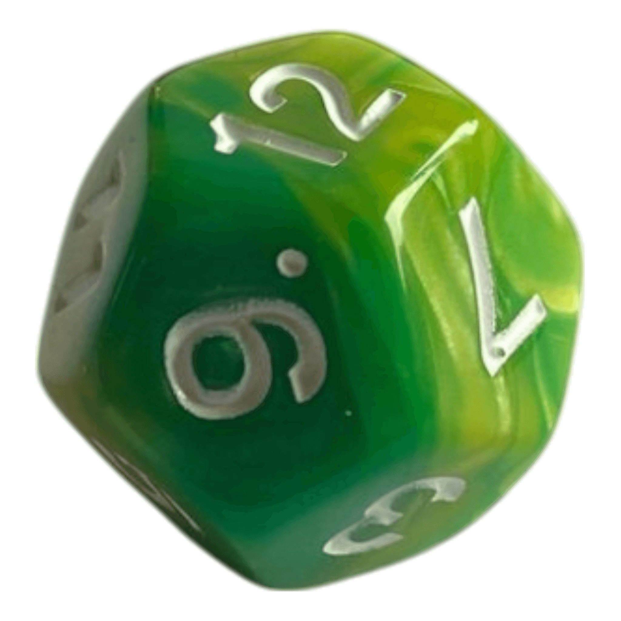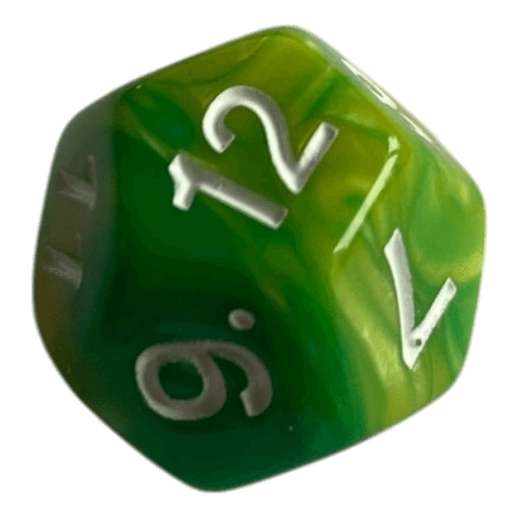 🎲 W12 Perlmutt Würfel in Gelb & Grün – Farbige Eleganz für dein Spiel