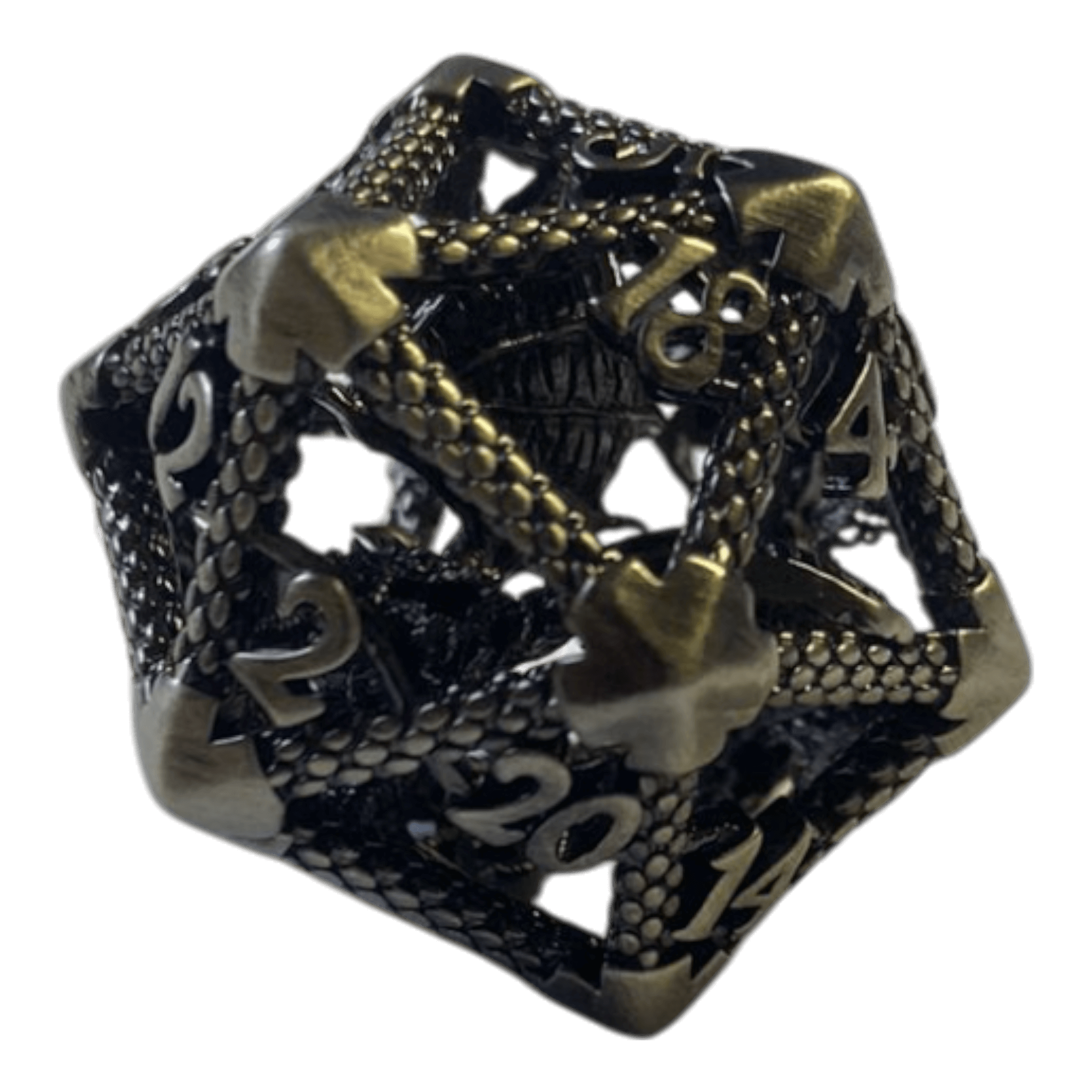 Der W20 Drachenwürfel in antikem Silber ist das Highlight für alle Rollenspiel-Enthusiasten. Im Inneren dieses präzise gefertigten Metallwürfels thront ein detailliertes Drachenmotiv, das nicht nur optisch beeindruckt, sondern auch die Fantasie beflügelt.