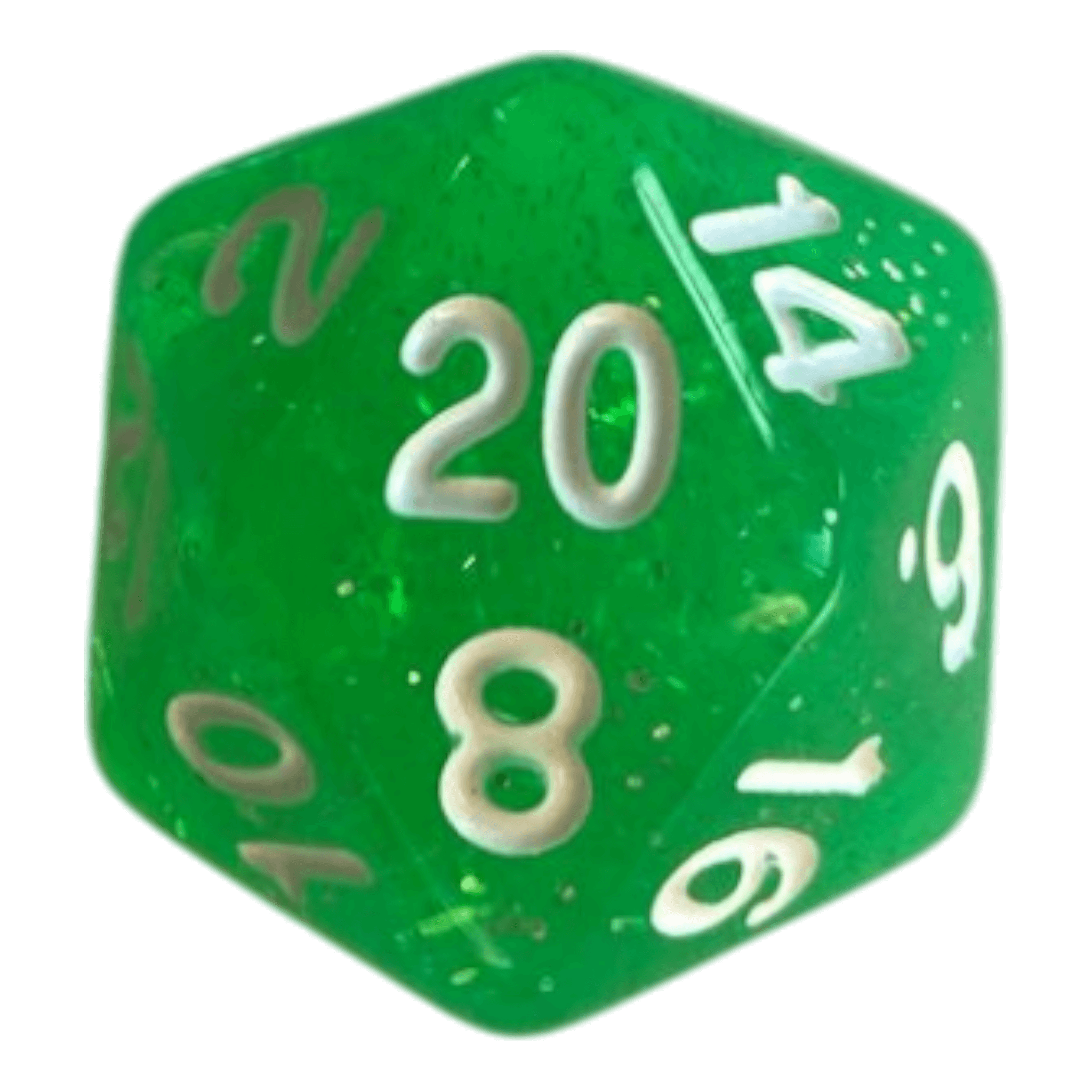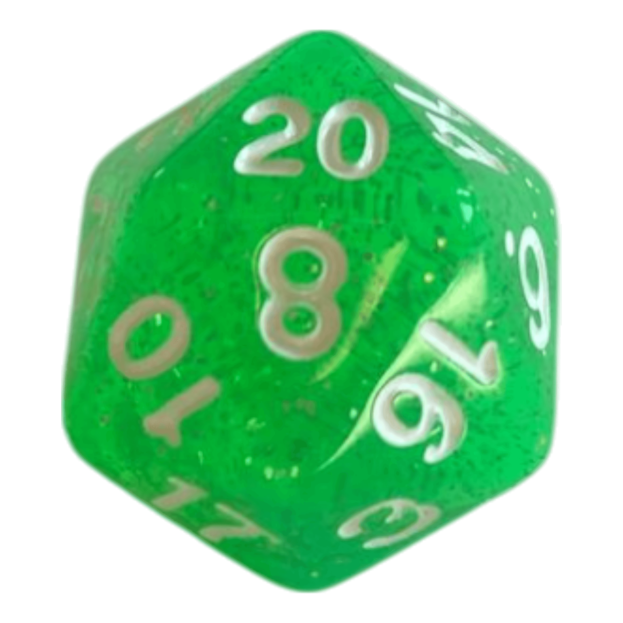 🎲 W20 Glitzer Würfel in Grün – Funkelnde Würfelmomente für dein Spiel