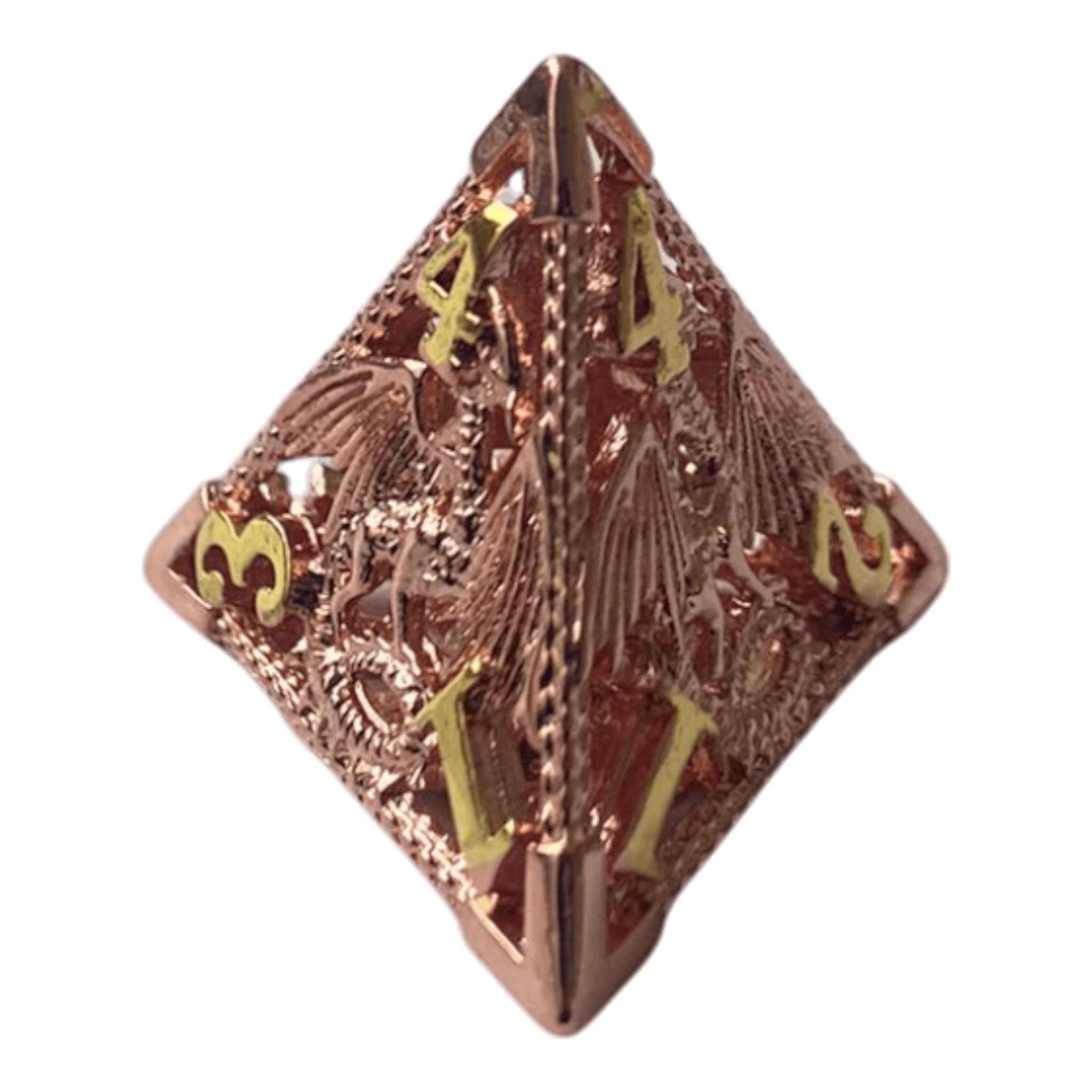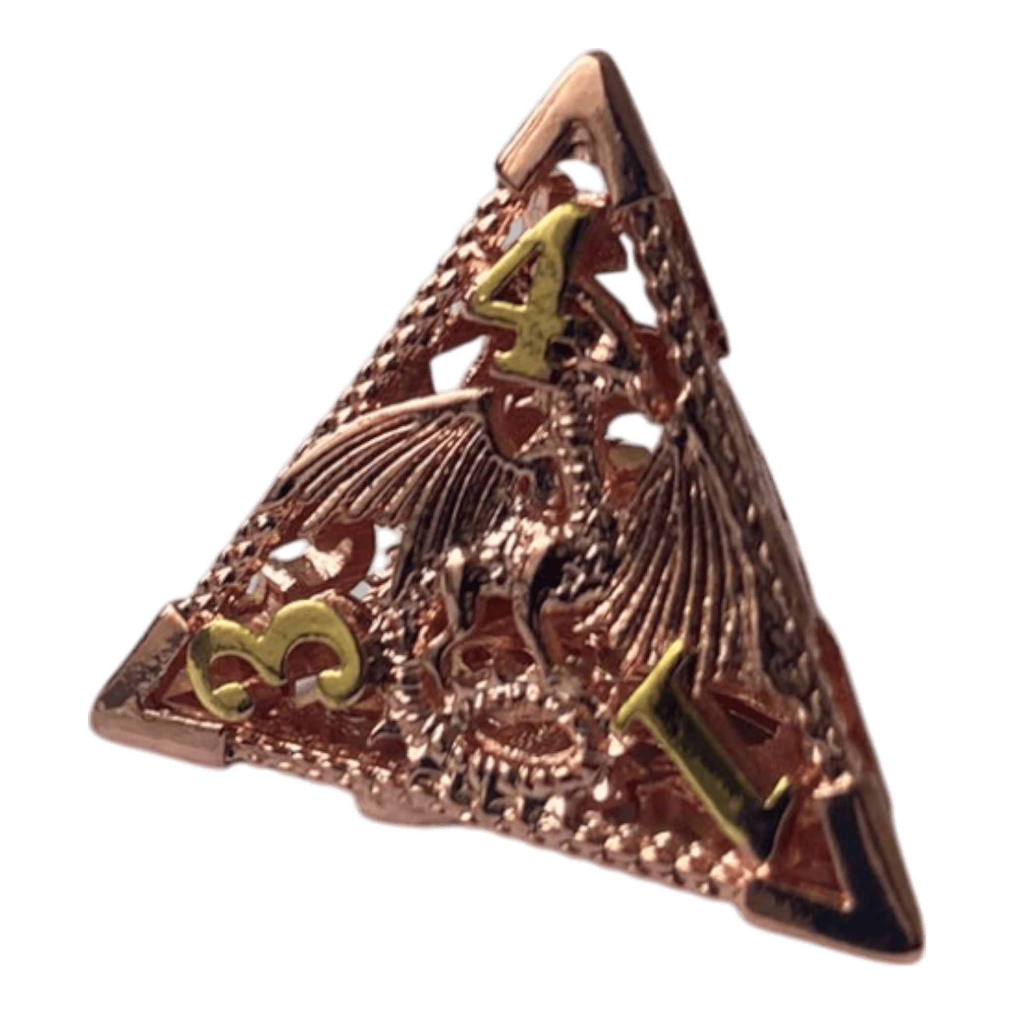 Der Drachenwürfel W4 in edlem Kupfer mit goldenen Nummern ist ein unverzichtbares Element für deine Pen & Paper-Abenteuer. Sein markantes Design kombiniert hochwertige Metallverarbeitung mit klarer Lesbarkeit, wodurch er nicht nur funktional, sondern auch optisch überzeugt.