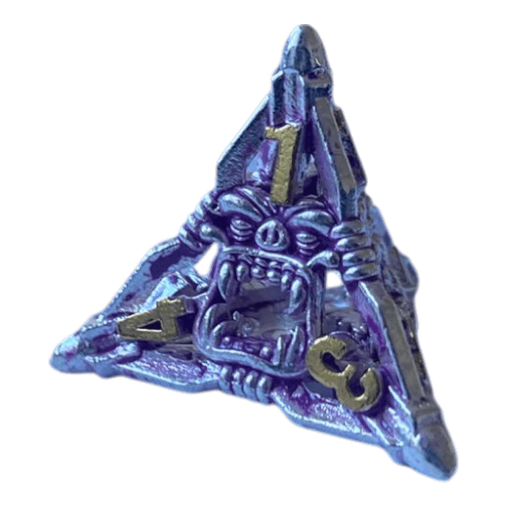 Der W4 Monsterwürfel in edlem Lila ist die perfekte Wahl für Rollenspieler, die Funktionalität mit außergewöhnlichem Design kombinieren möchten. Gefertigt aus hochwertigem Metall, überzeugt dieser Würfel durch eine angenehme Schwere und präzise Balance.