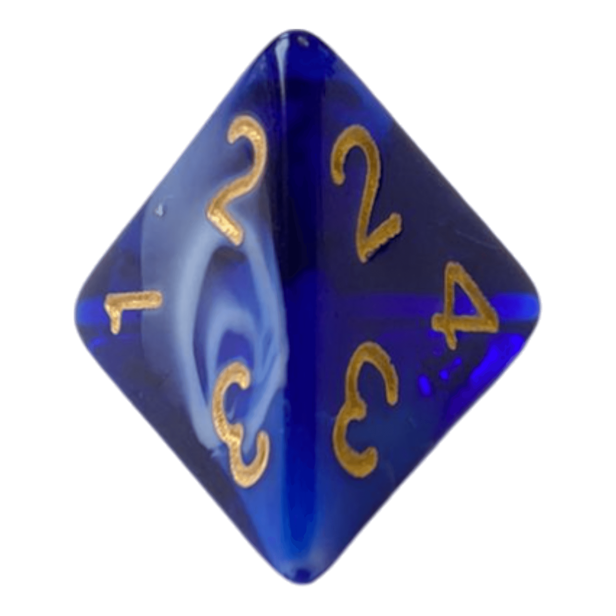W4 Marmorierter Würfel Blau/Weiß – 16mm mit goldenen Zahlen