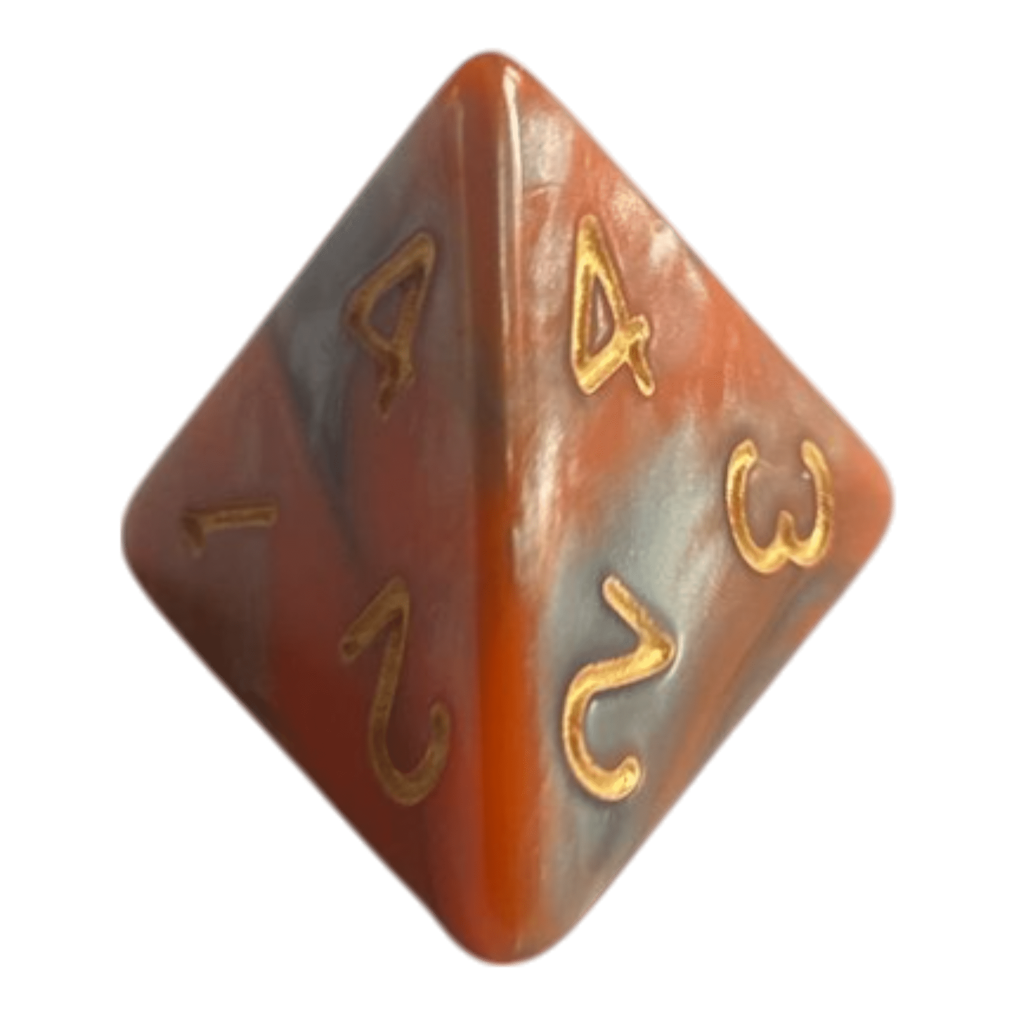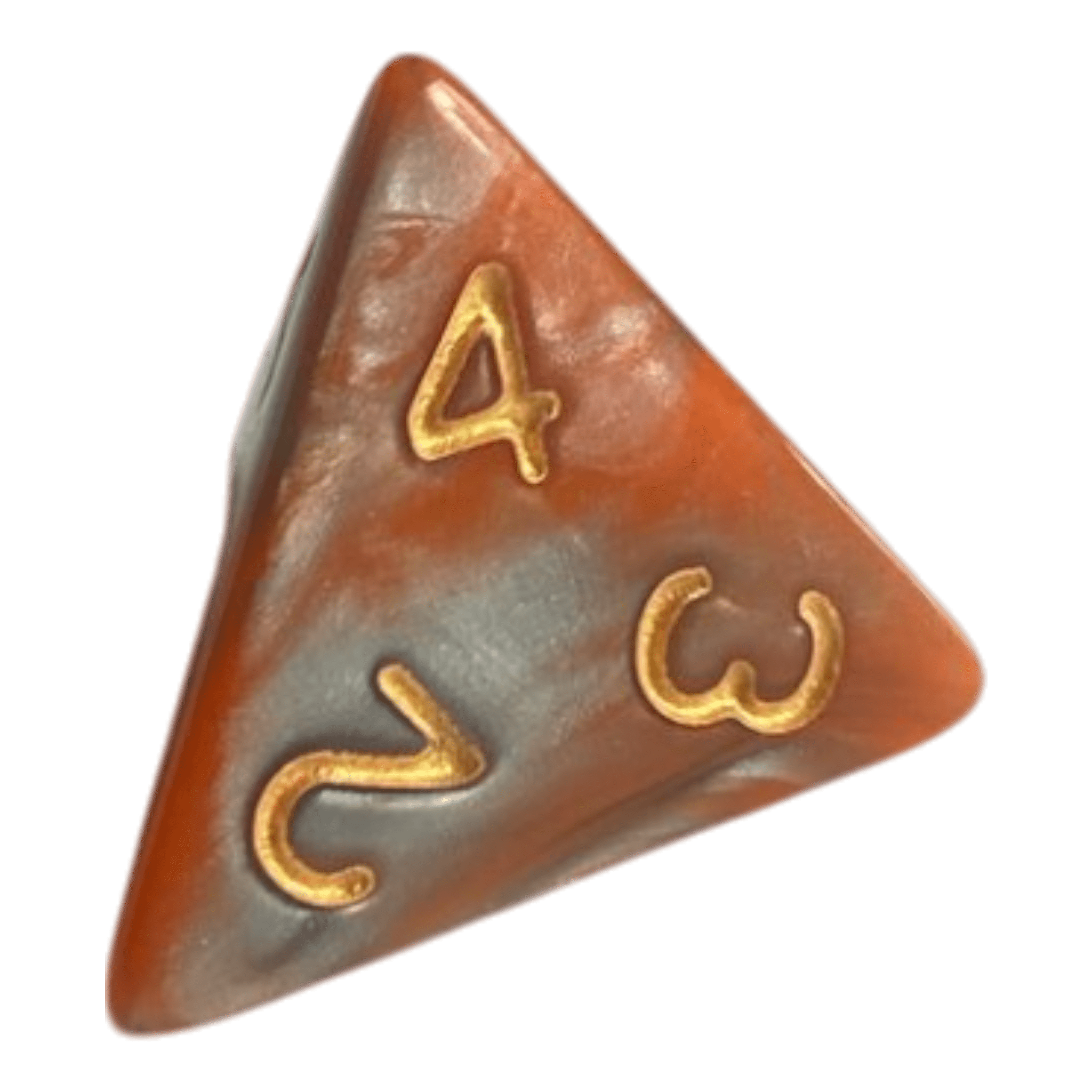 🎲 W4 Marmorierter Würfel in Orange/Grau – Stilvolle Präzision