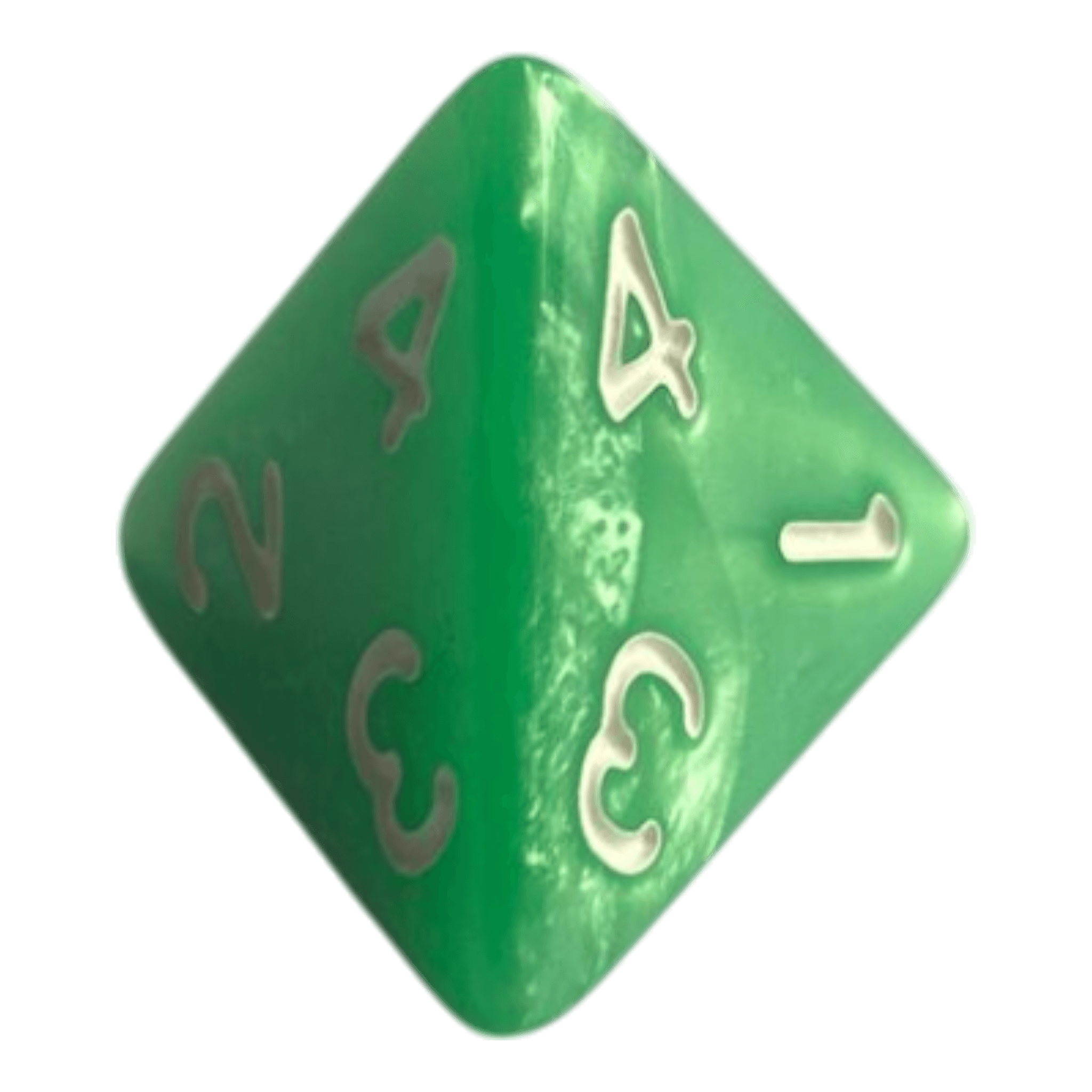 🍀 W4 Perlmutt Würfel in Grün – Strahlendes Design für dein Spiel