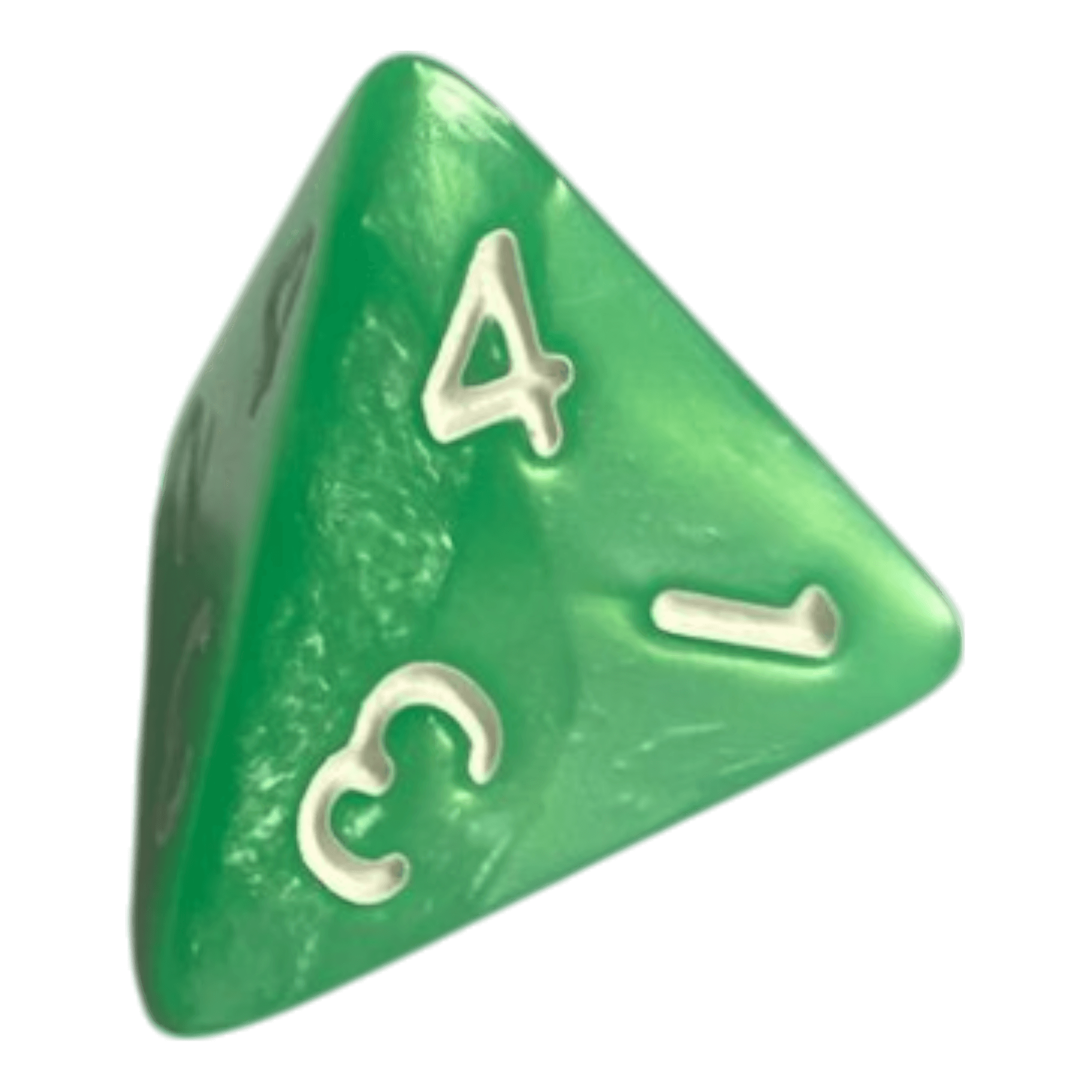 Ob für Pen & Paper-Rollenspiele, Tabletop oder Brettspiele – dieser W4 Würfel ist nicht nur ein praktisches Hilfsmittel, sondern auch ein echter Blickfang. Ergänze dein Set mit diesem stilvollen Perlmutt Würfel und bringe eine frische, lebendige Farbe in deine Sammlung!