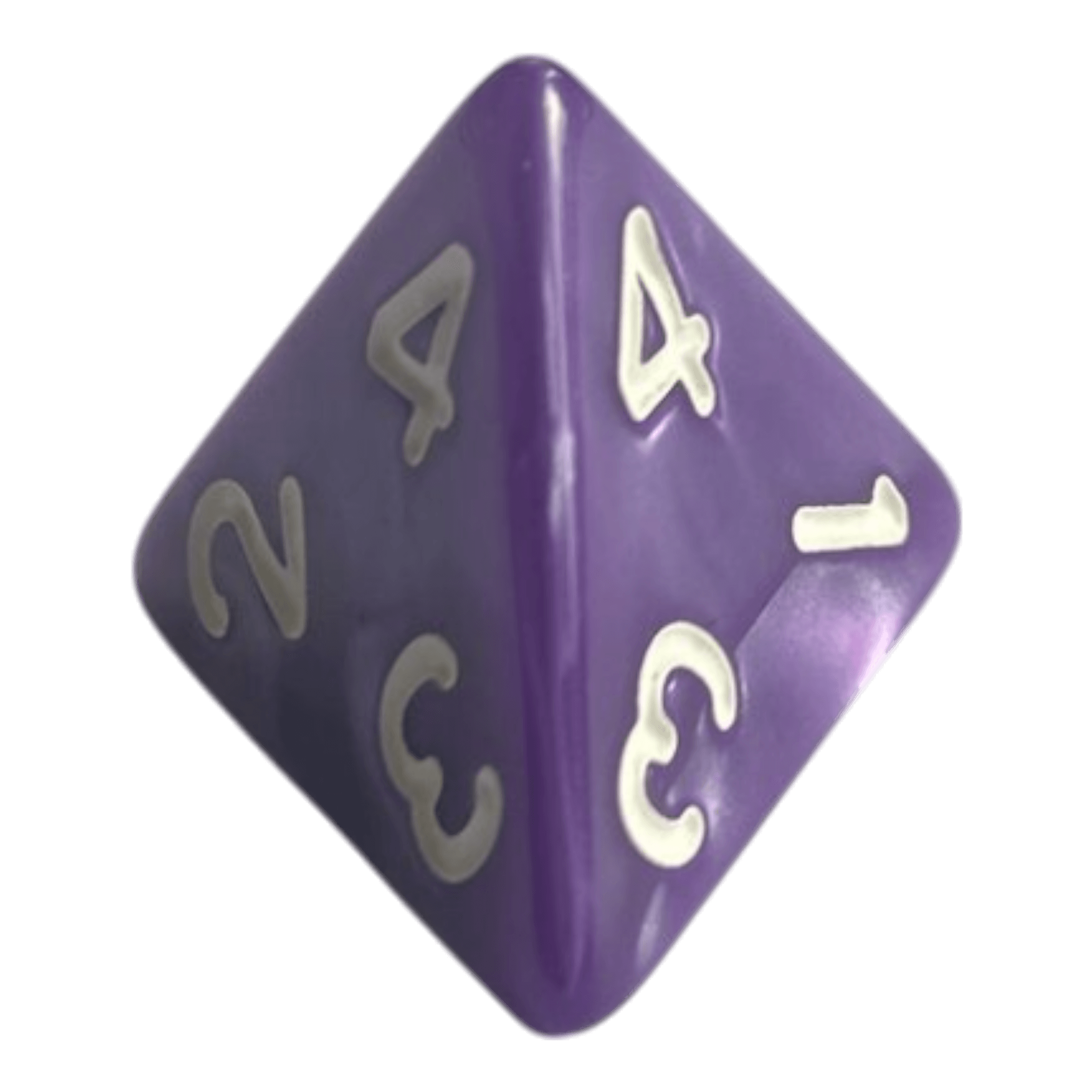 Dieser W4 Würfel in schimmerndem Perlmutt-Lila verleiht deinem Würfelset eine edle und mystische Note. Die perlmuttartige Oberfläche erzeugt je nach Lichteinfall faszinierende Farbreflexe, während die weißen Zahlen für eine hervorragende Lesbarkeit sorgen. Mit einer Größe von 16 mm und hochwertiger Kunststoffverarbeitung bietet dieser Würfel eine angenehme Haptik und präzise Würfelergebnisse.