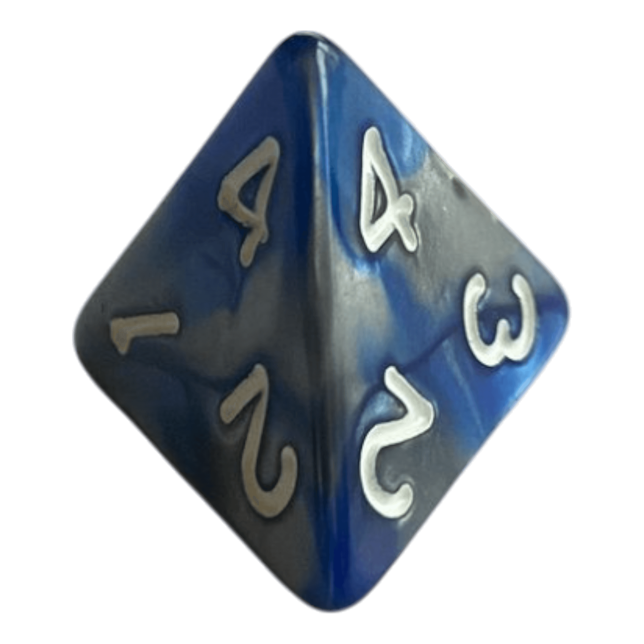Dieser W4 Würfel in Blau und Grau überzeugt durch seine schimmernde Perlmutt-Optik, die bei jedem Lichteinfall ein einzigartiges Farbspiel entfaltet. Die weißen Zahlen heben sich deutlich ab und sorgen für eine ausgezeichnete Lesbarkeit.