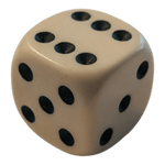W6 – Elfenbeinfarbener Würfel mit schwarzen Punkten (16 mm)