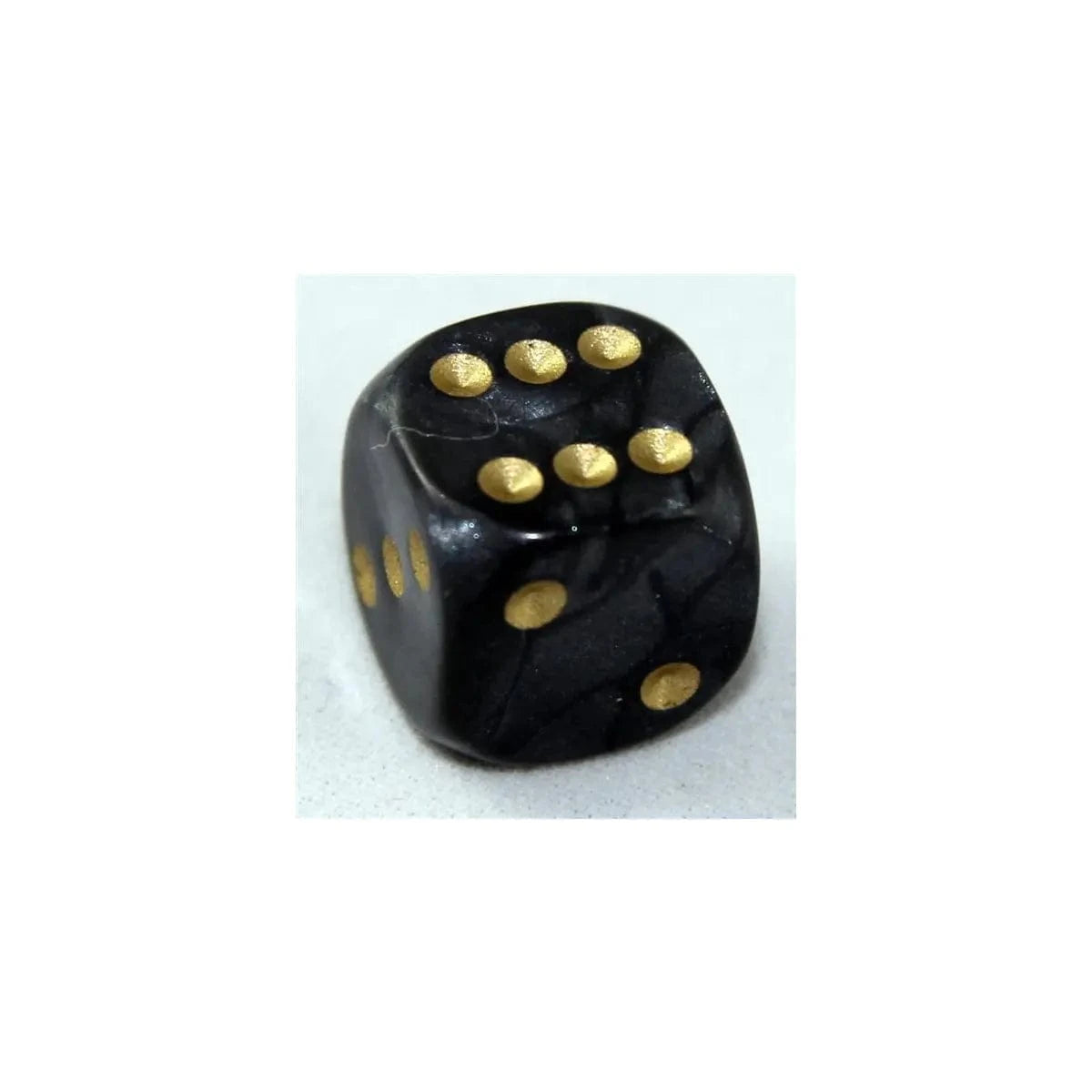 6-seitiger Standardwürfel in Perlmutt schwarz mit goldenen Augen.