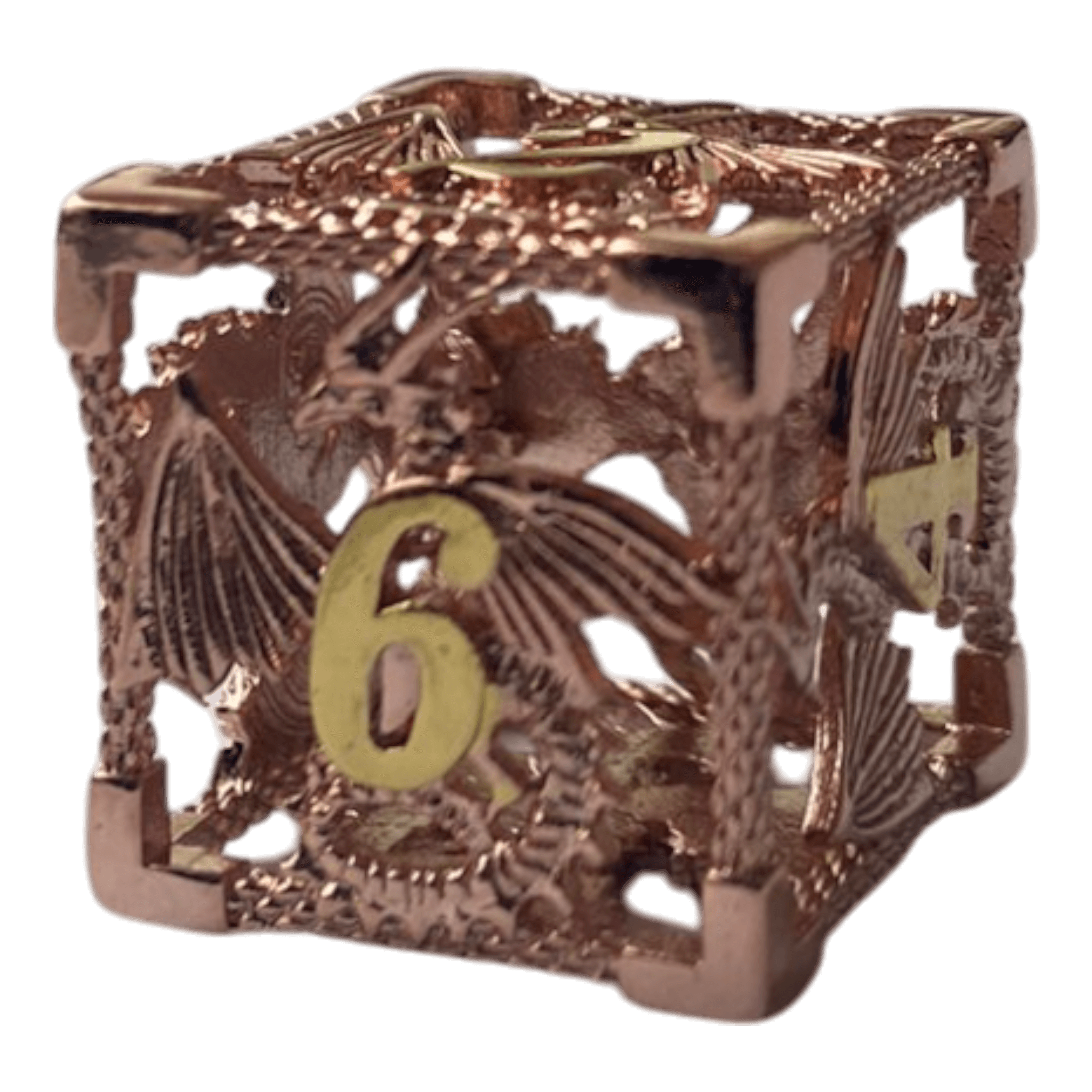 Der Drachenwürfel W6 in elegantem Kupferdesign mit goldenen Nummern vereint stilvolle Optik und zuverlässige Funktionalität. Dank seiner hochwertigen Metallverarbeitung liegt der Drachenwürfel angenehm schwer in der Hand und bietet präzise Ergebnisse bei jedem Wurf.