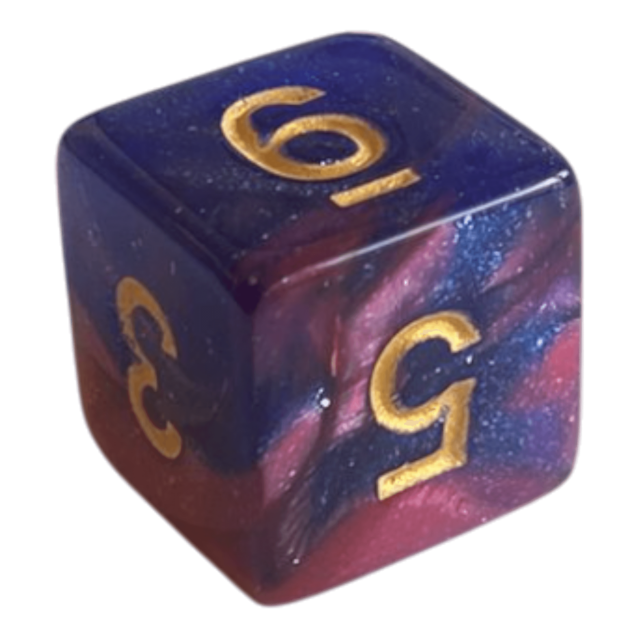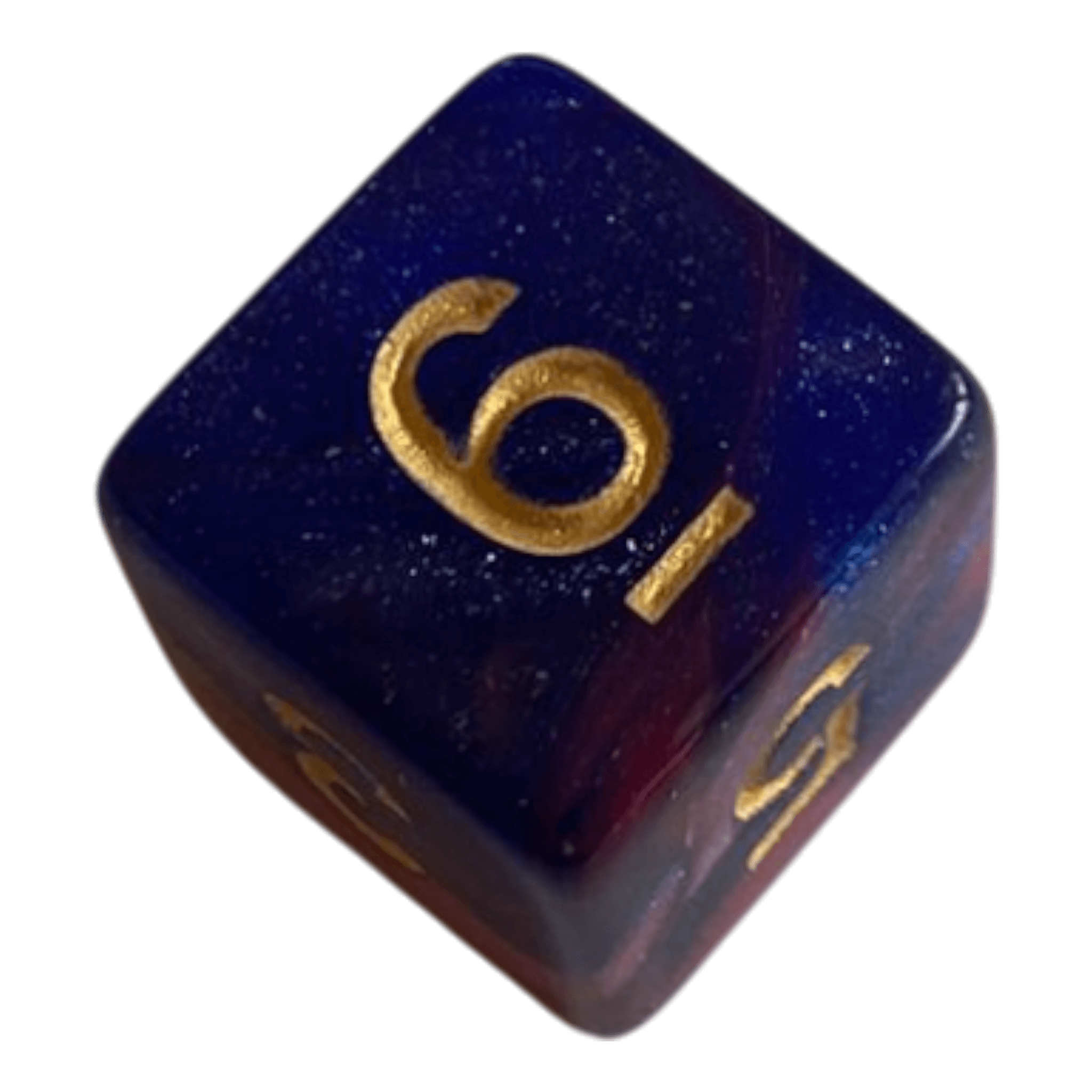 Dieser W6 Würfel in Blau/Rot ist die perfekte Kombination aus kräftiger Farbgebung und schimmernder Eleganz. Feine Glitzerpartikel durchziehen den hochwertigen Kunststoff und erzeugen bei jeder Bewegung ein lebendiges Spiel aus Licht und Farbe. Die fließenden Übergänge von Blau zu Rot verleihen dem Würfel eine dynamische Optik, die durch die goldenen Augen stilvoll ergänzt wird.