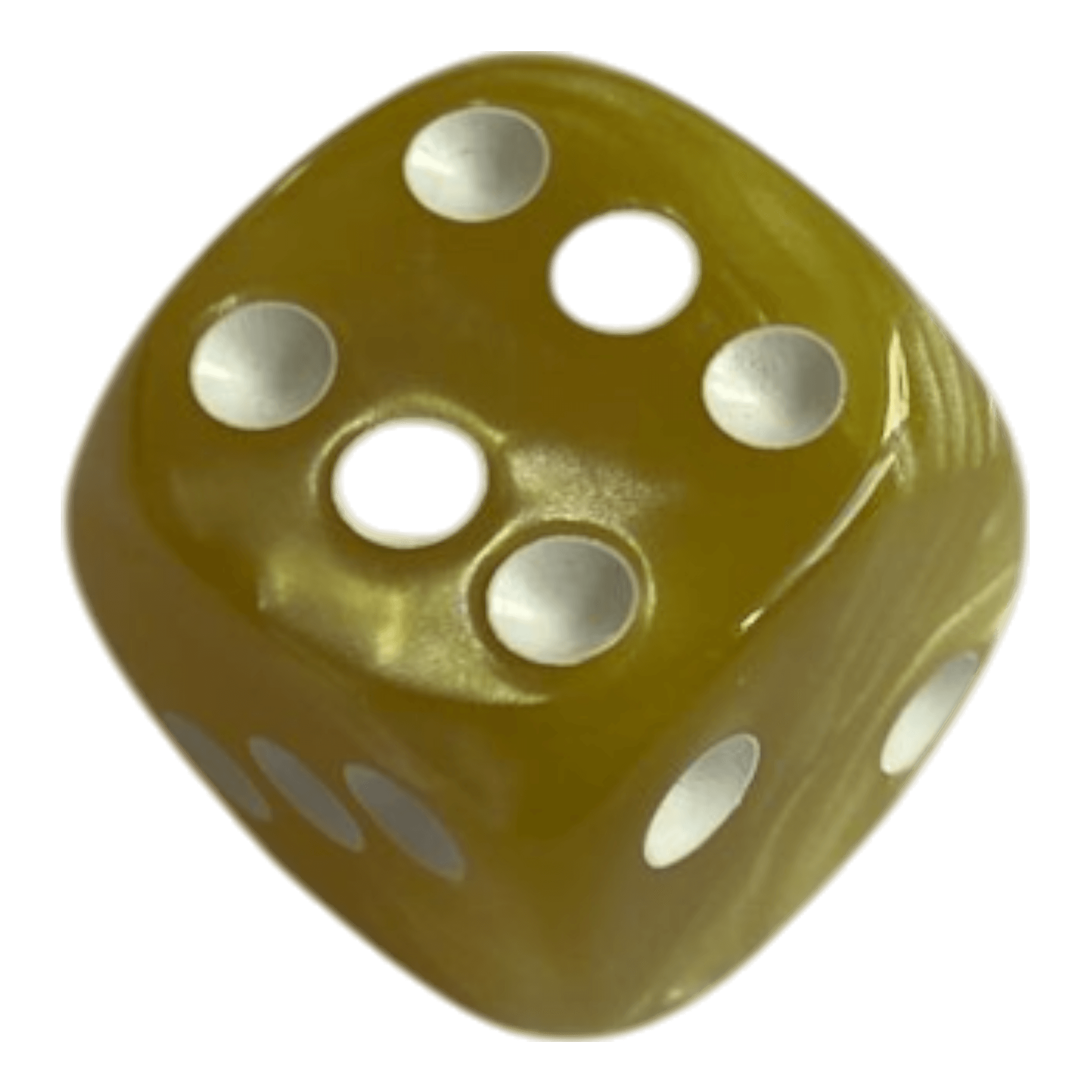Dieser W6 Würfel in Gelb fasziniert mit seiner Perlmutt-Optik, die je nach Lichteinfall schimmert und für ein einzigartiges Farbspiel sorgt. Die weißen Augen heben sich deutlich vom strahlenden Gelb ab und gewährleisten eine ausgezeichnete Lesbarkeit – perfekt für jede Spielrunde.