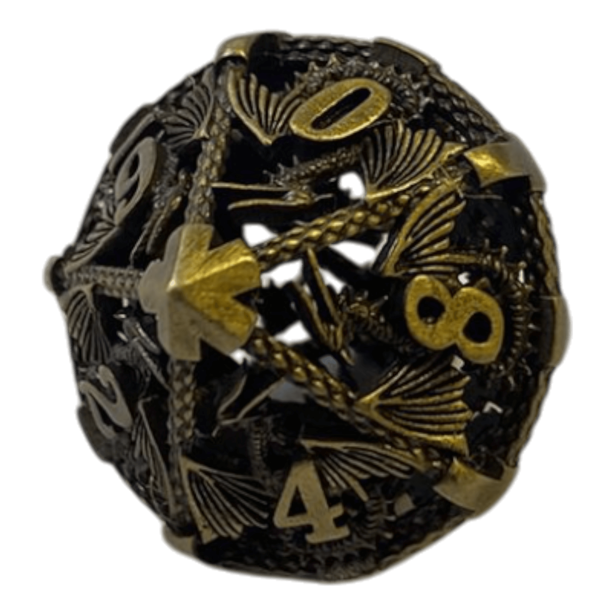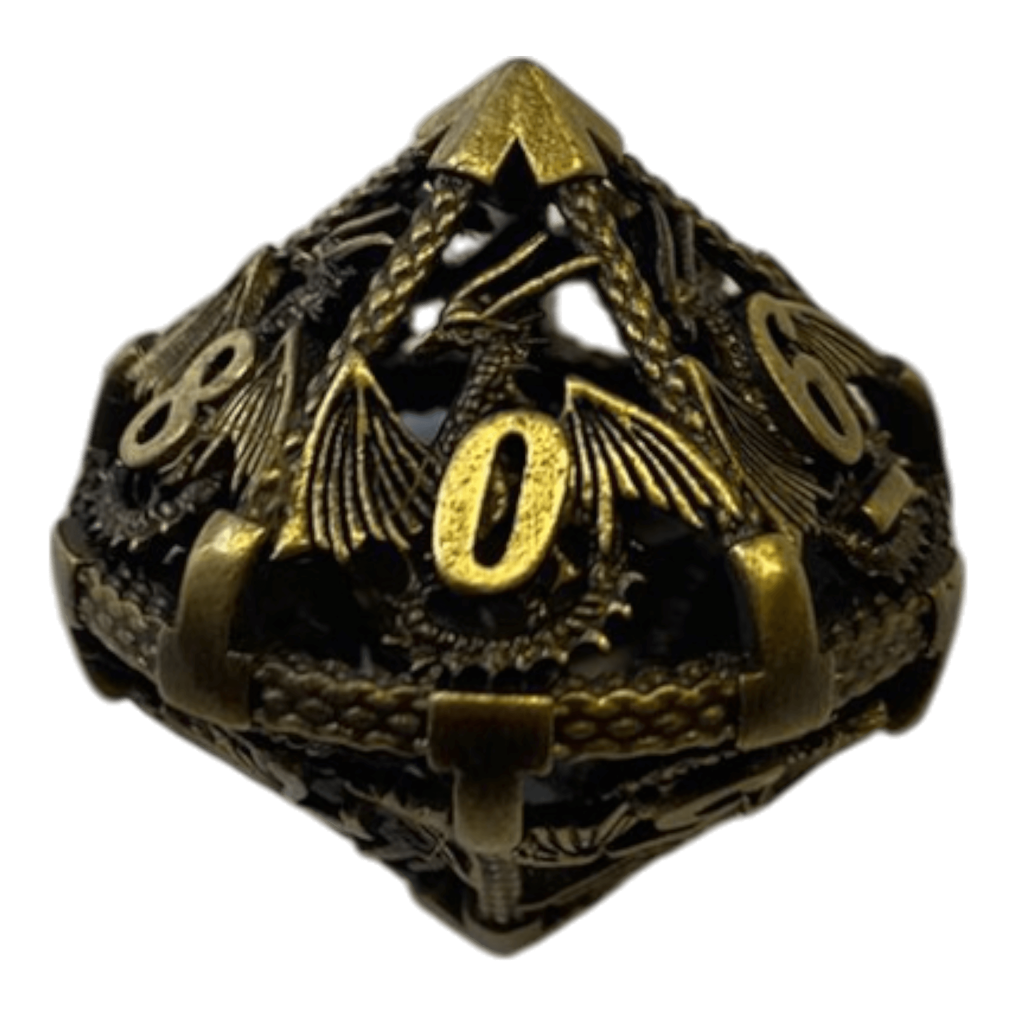 Der W8 Drachenwürfel in antikem Messing ist ein Highlight für alle, die außergewöhnliche Metallwürfel lieben. Im Inneren dieses Würfels verbirgt sich ein kunstvoll gestaltetes Drachenmotiv, das deine Abenteuer in D&D, Das Schwarze Auge (DSA) und anderen Pen & Paper-Rollenspielen aufwertet.