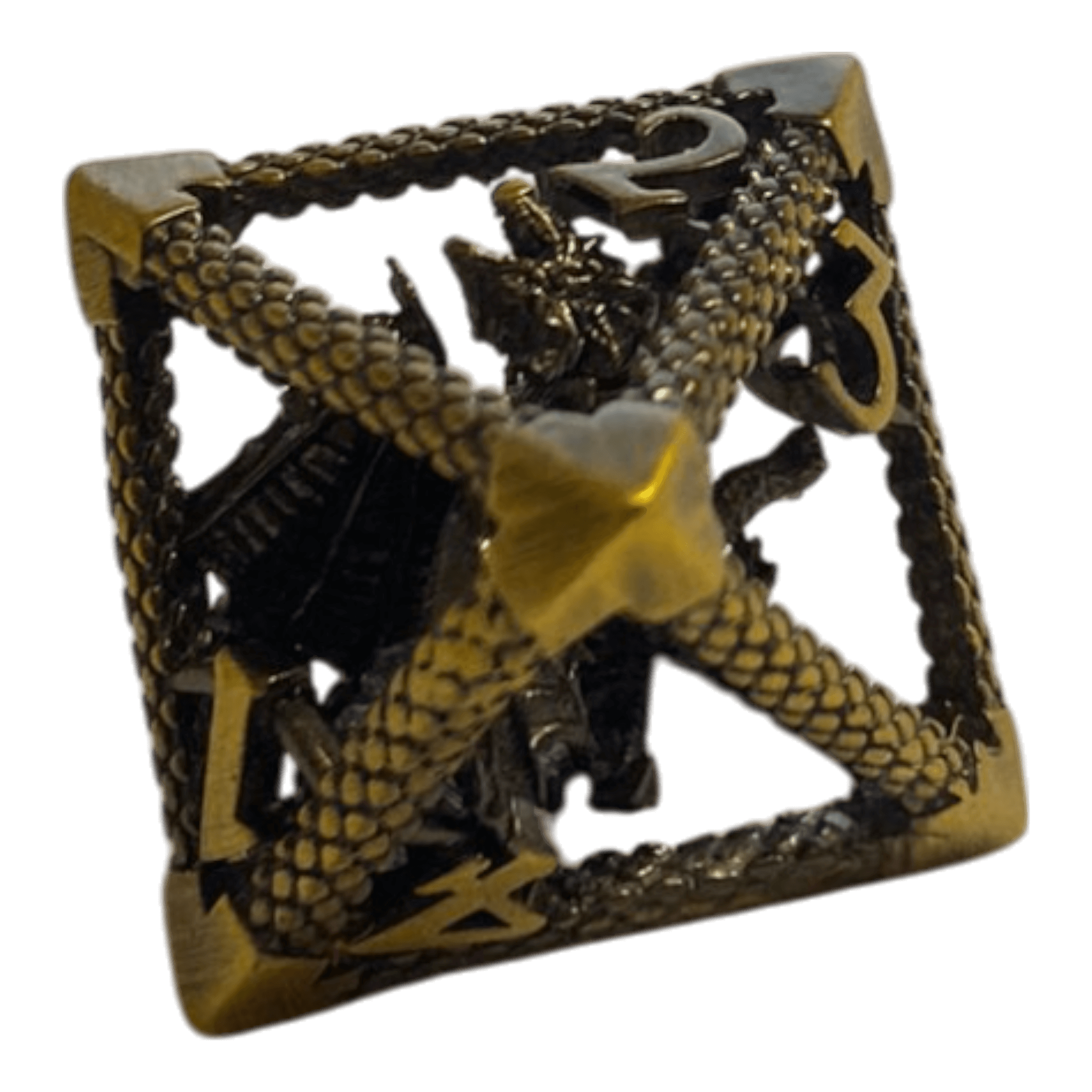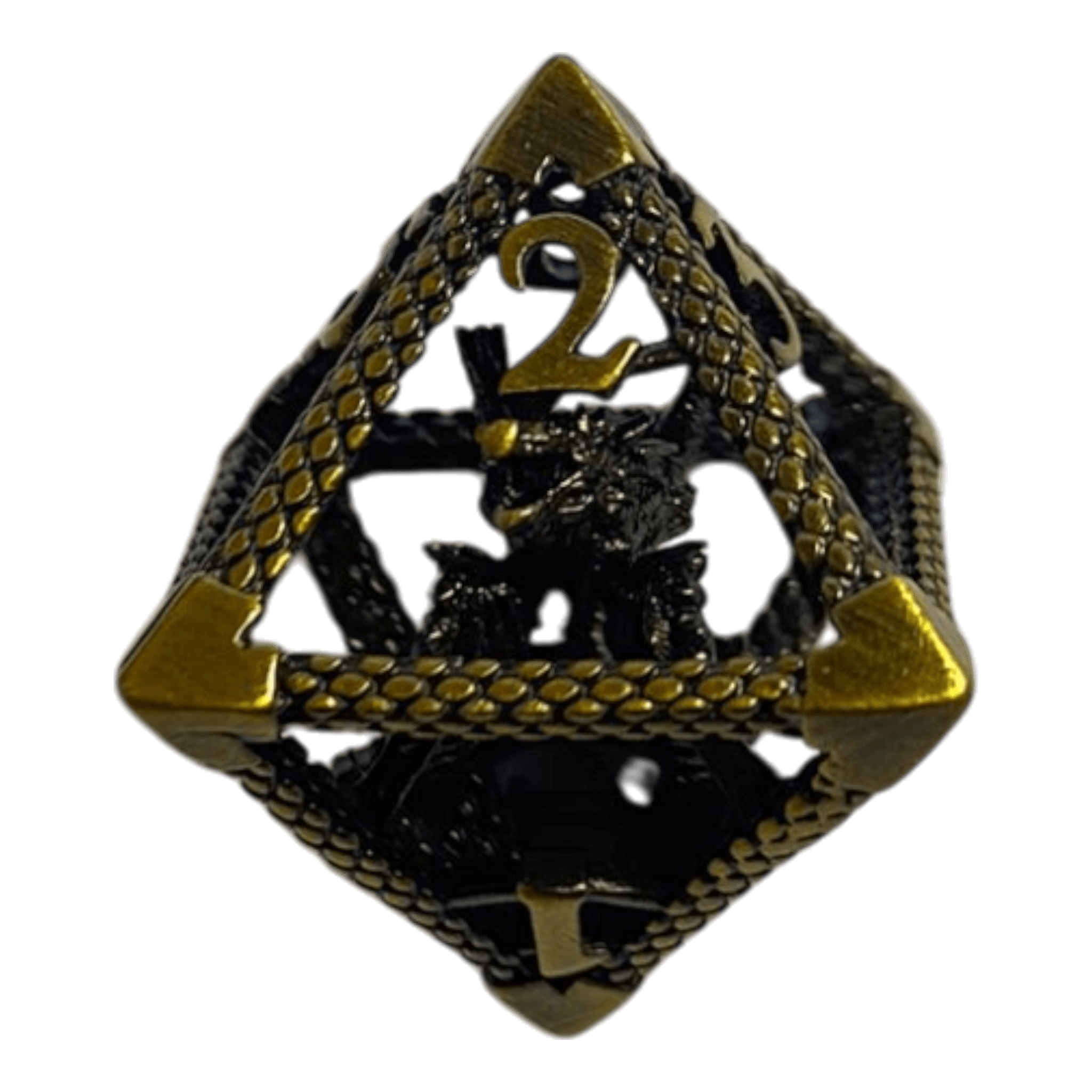 Der W8 Drachenwürfel in edlem Bronze ist ein Meisterwerk der Handwerkskunst. Im Inneren dieses detailreichen Metallwürfels schwebt ein faszinierendes Drachenmotiv, das ihn zu einem unverzichtbaren Accessoire für Fans von D&D, DSA und anderen Pen & Paper-Rollenspielen macht.