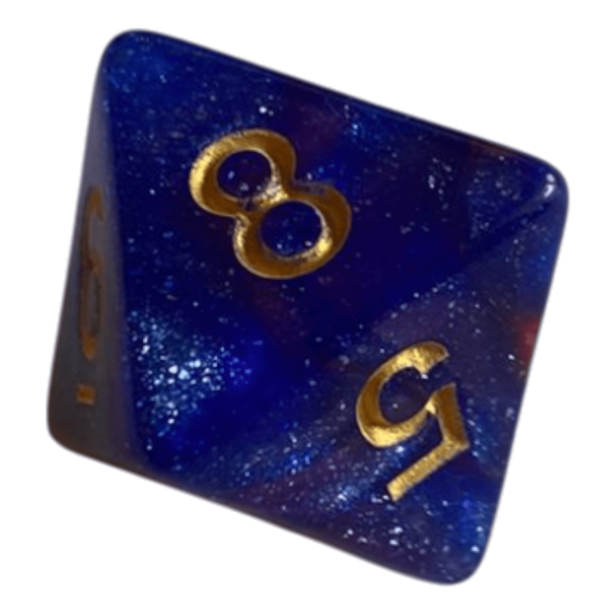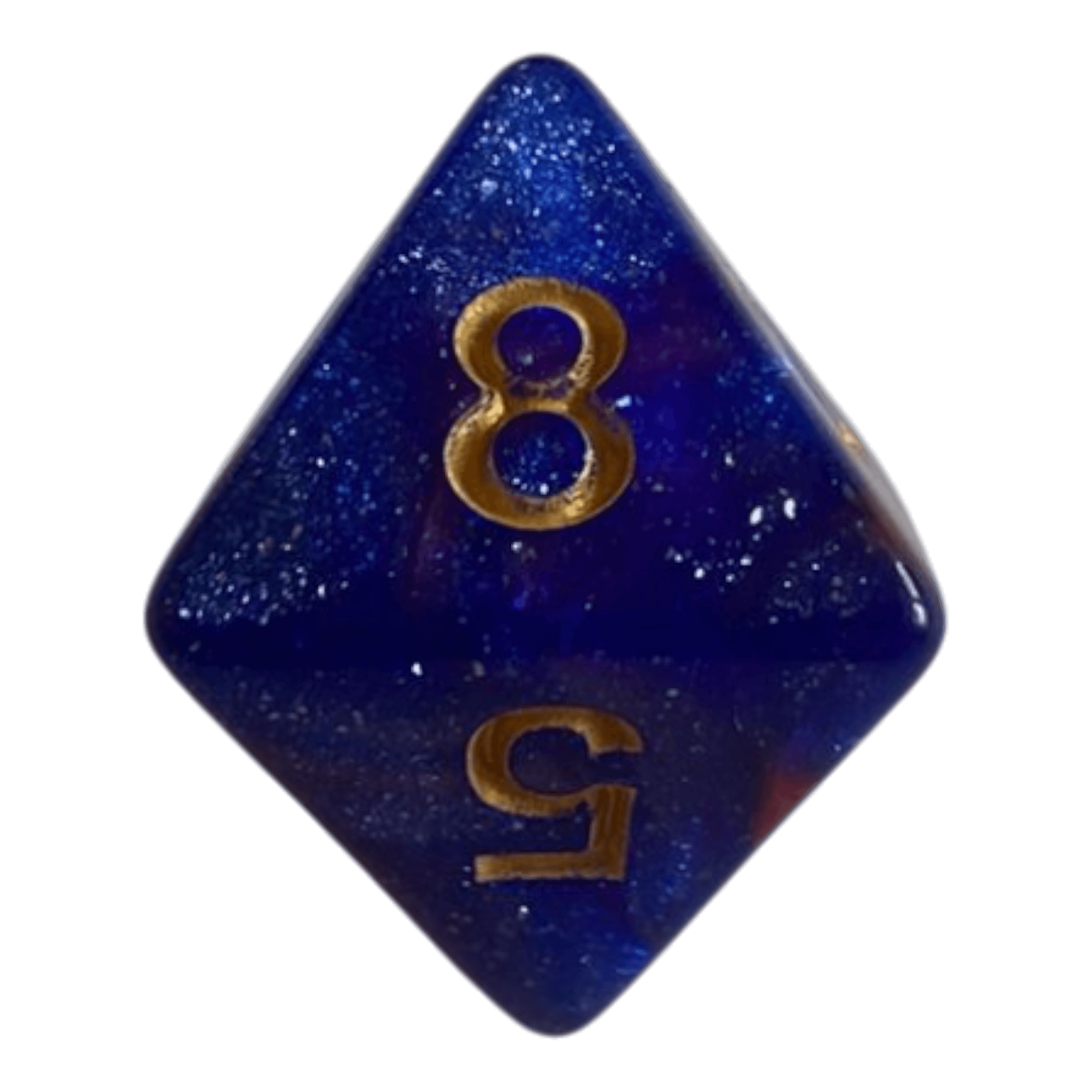 Dieser W8 Würfel in Blau/Rot verbindet präzises Würfeln mit auffälliger Ästhetik. Der hochwertige Kunststoff ist durchzogen von feinen Glitzerpartikeln, die je nach Lichteinfall schimmern und dem Würfel eine magisch wirkende Tiefe verleihen. Der fließende Farbübergang zwischen tiefem Blau und intensivem Rot macht jedes Exemplar einzigartig.