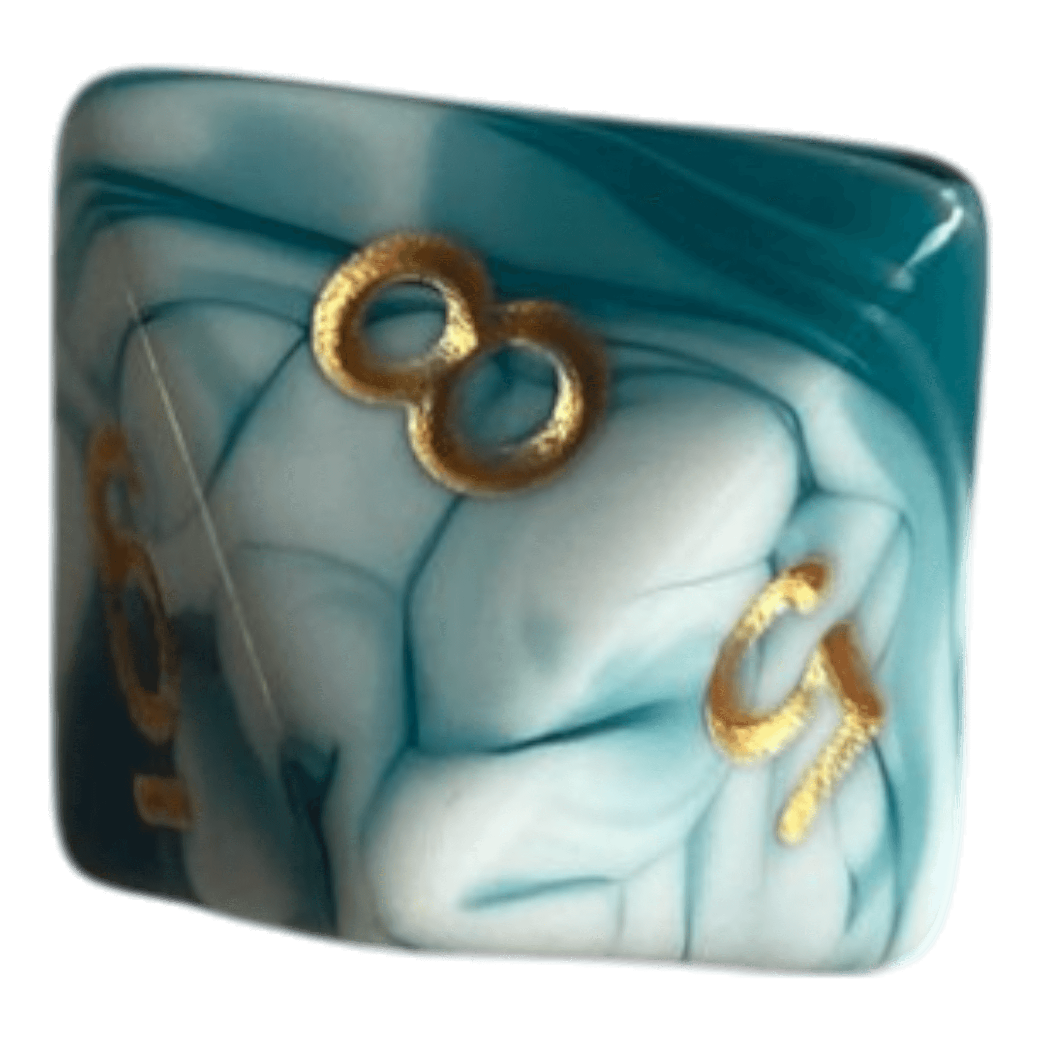 Dieser W8 Würfel in Schwarz, Grün und Weiß besticht durch seine edle marmorierte Optik, die jedes Stück einzigartig macht. Die goldenen Zahlen bieten einen stilvollen Kontrast und sorgen für eine hervorragende Lesbarkeit, während die hochwertige Kunststoffverarbeitung für eine angenehme Haptik sorgt.