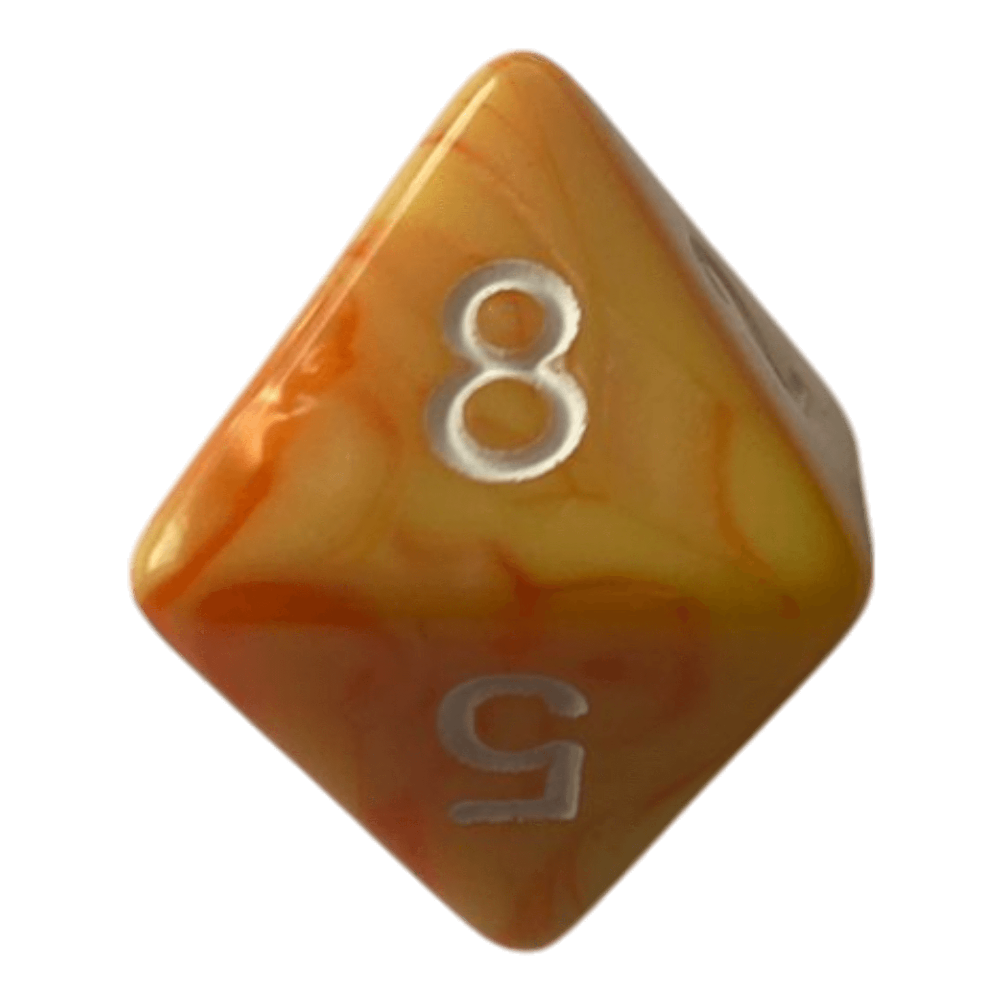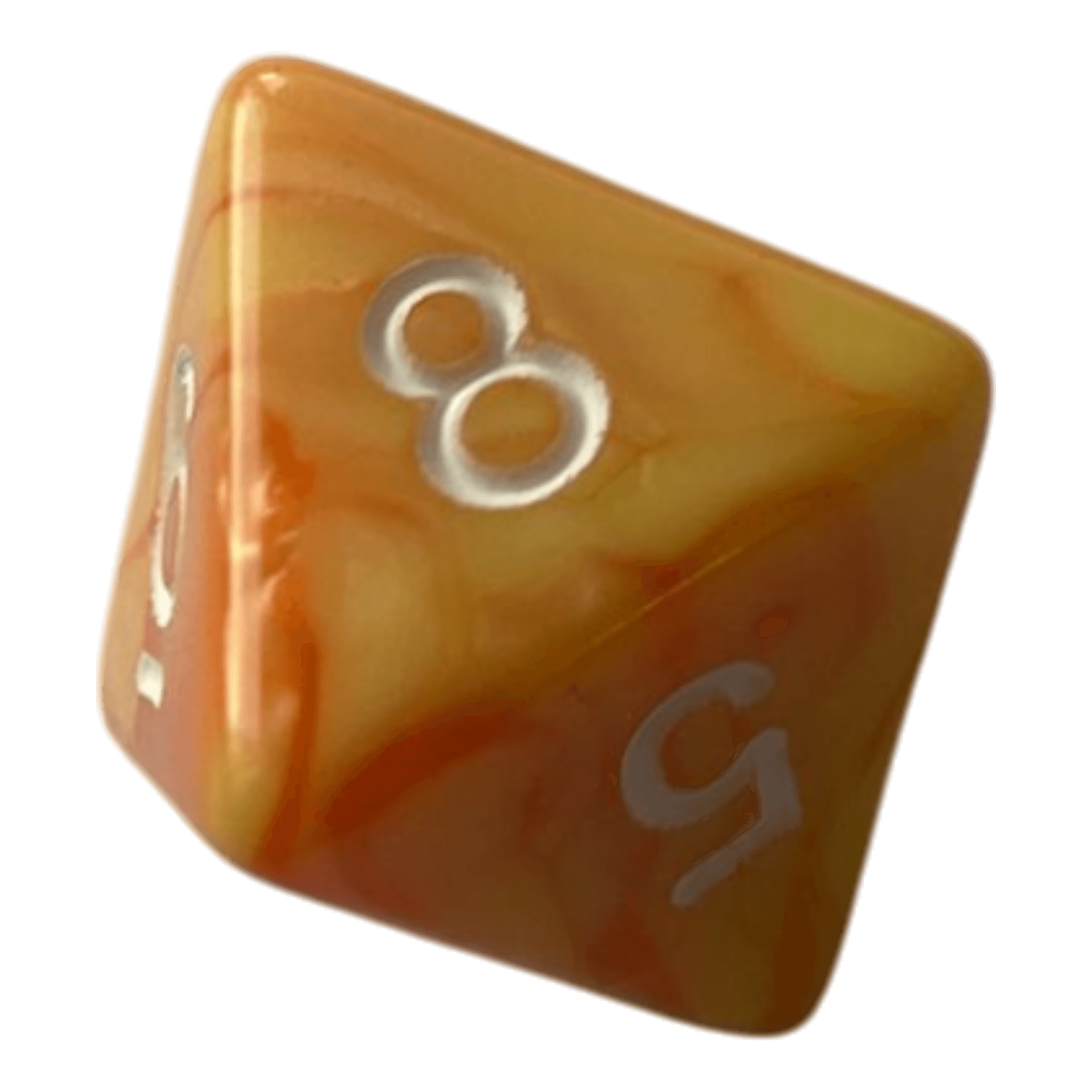 Der W8 Perlmutt Würfel in den kräftigen Farben Orange und Gelb ist ein wahrer Blickfang für jeden Spieltisch. Hergestellt aus langlebigem Kunststoff, bietet dieser Würfel eine präzise Balance und exakte Würfelergebnisse.