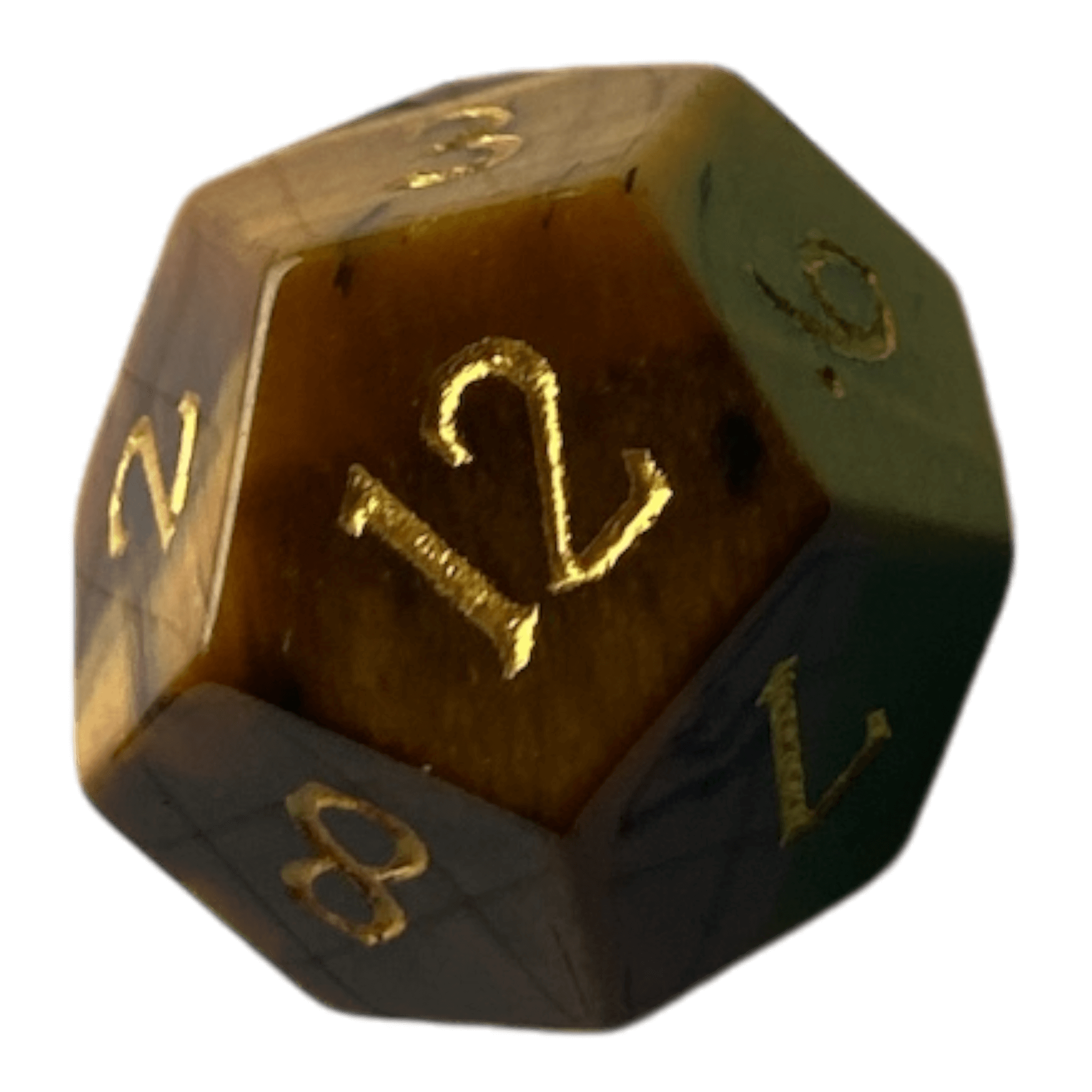 Ideal für Rollenspiele, Tabletop-Games oder als einzigartiges Sammlerstück – der W12 Tigereye Würfel in Gelb bringt Eleganz und Qualität auf deinen Spieltisch.