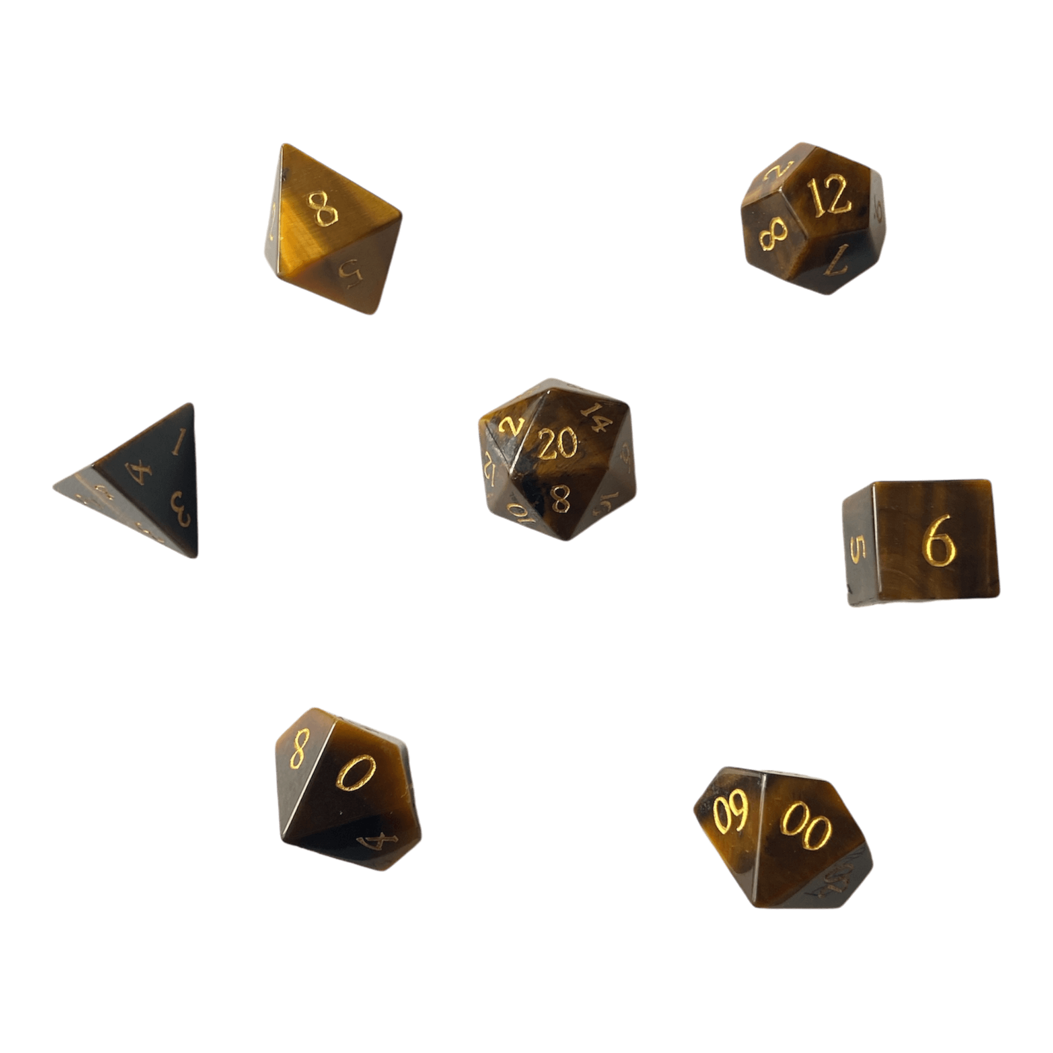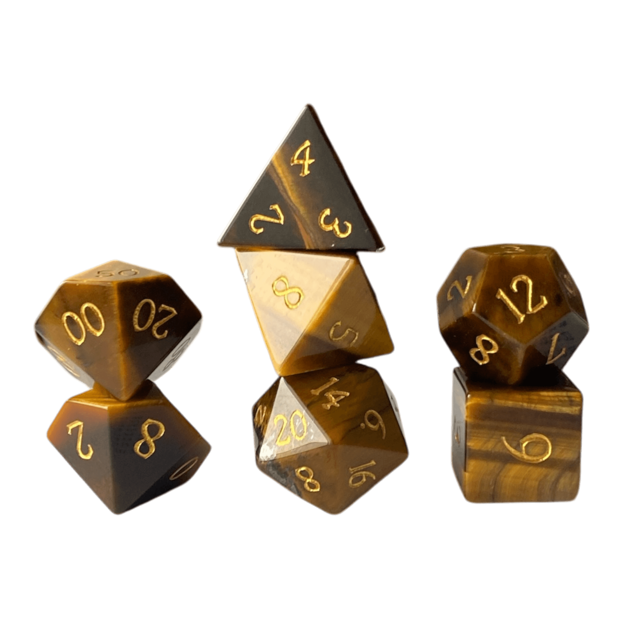 Tiger Eye Edelsteinwürfelset in Gelb – Hochwertige Edelsteinverarbeitung mit schimmernden Gelb- und Brauntönen