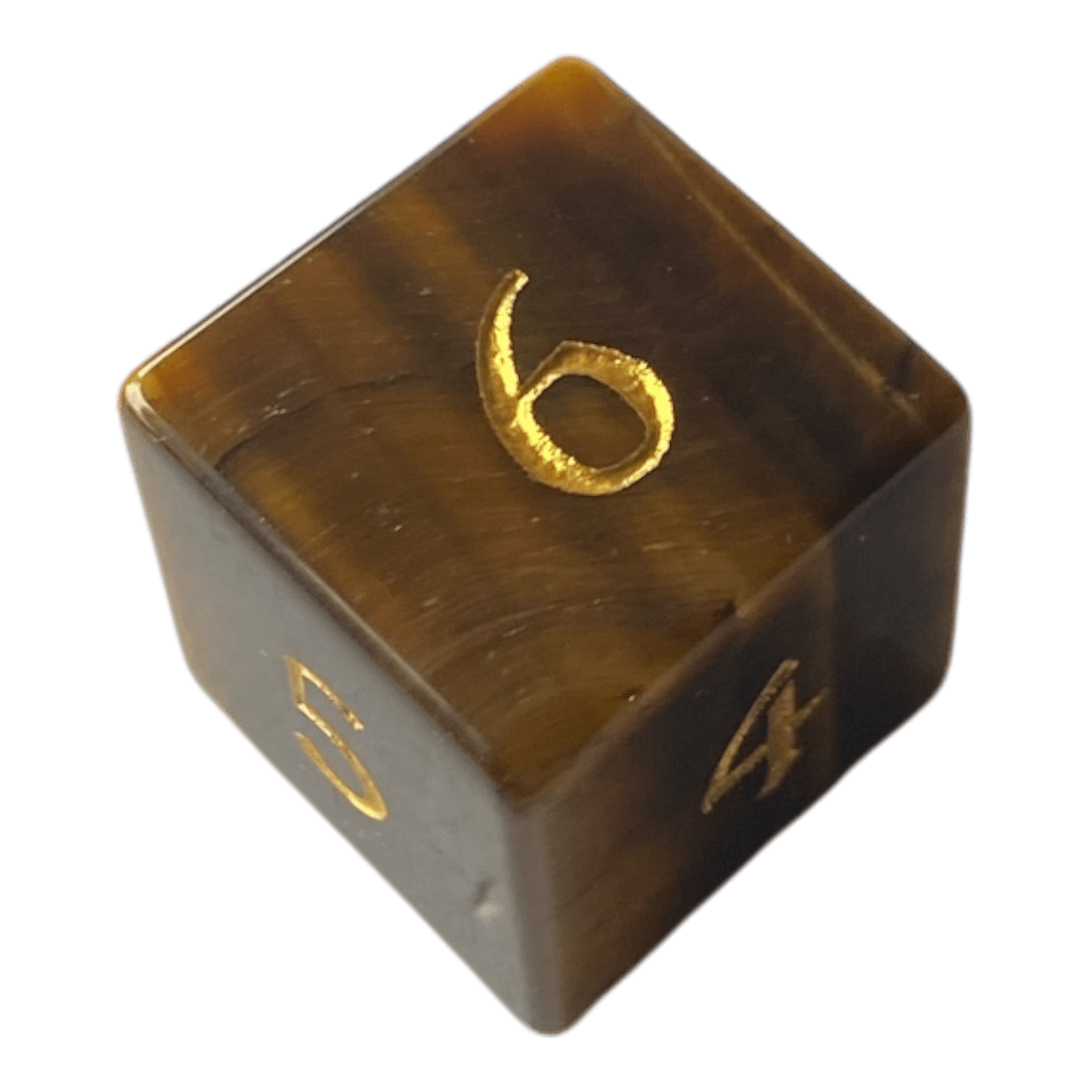 W6 Tiger Eye Edelsteinwürfel in Gelb – Hochwertige Edelsteinverarbeitung mit schimmernden Gelb- und Brauntönen